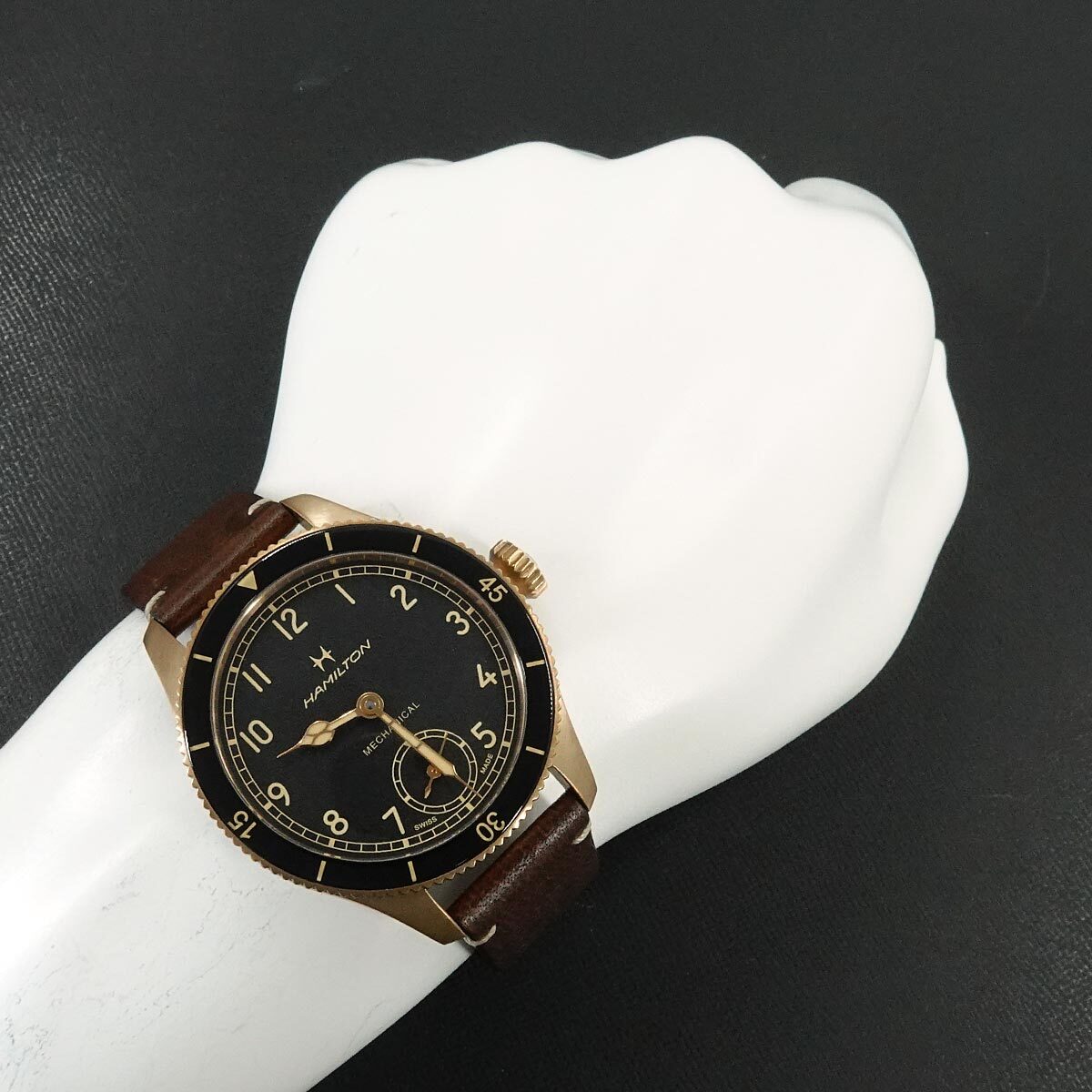 商品概要 | ハミルトンから人気モデルの男性用腕時計『カーキ』です。素材には経年劣化を楽しむことができるブロンズを採用しており、ビジネスからプライベートまで幅広いシーンに活躍するお品です♪ |