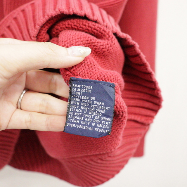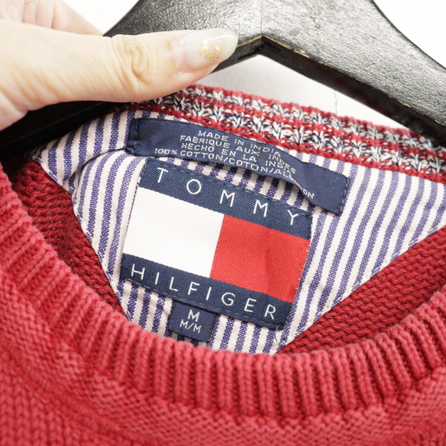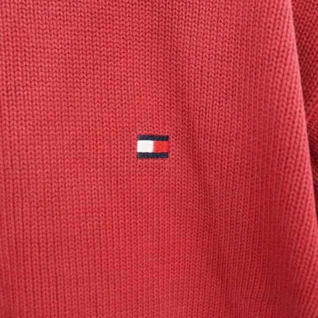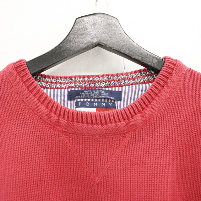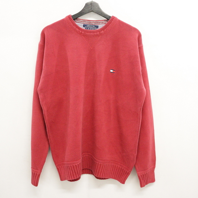 商品名 N439 90sビンテージ トミーヒルフィガー コットンニットセーター■1990年代製 表記Mサイズ 赤 レッド 刺繍 アメカジ ストリート 古着