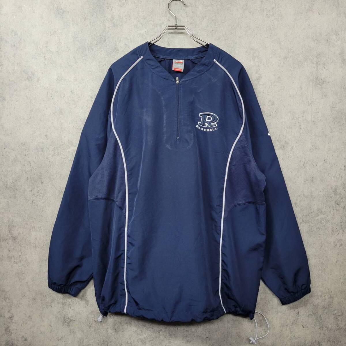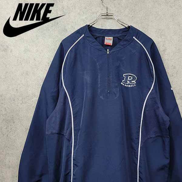【古着】ナイキ ベースボール 刺繍 ナイロンジャケット ネイビー XL
