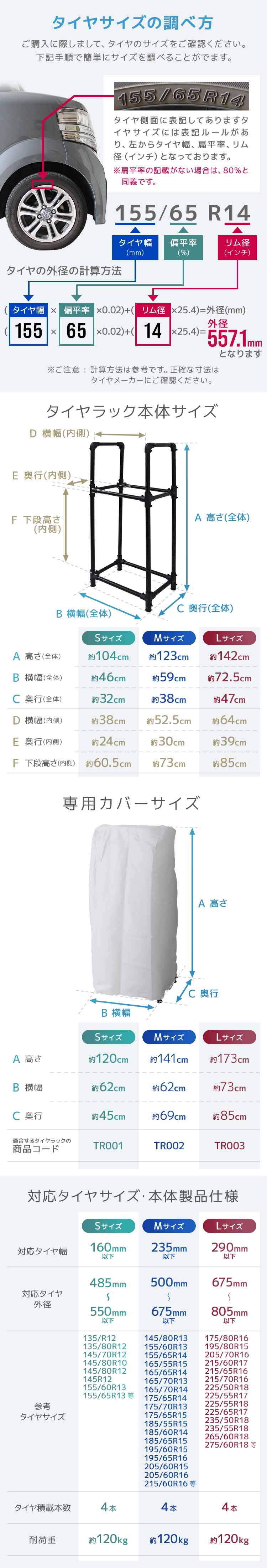 | タイヤ4本収納 耐荷重120kg |