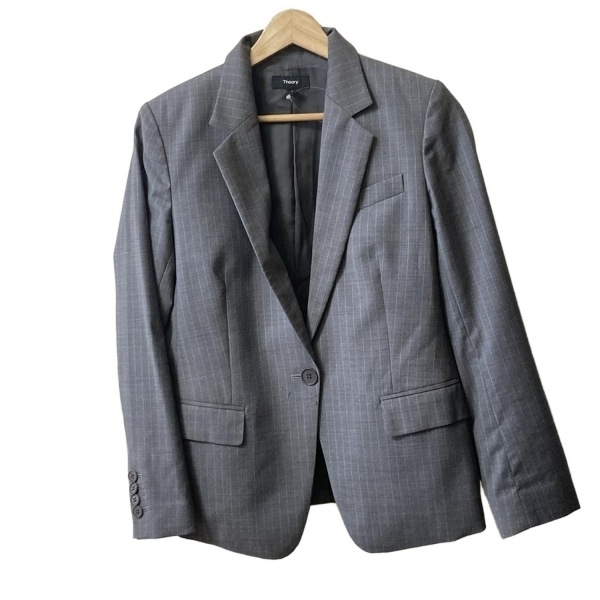 セオリー theory サイズ2 S - グレー×ブルーグレー レディース 長袖/ストライプ/秋/冬 ジャケット