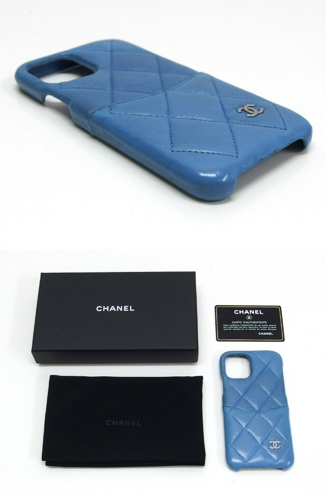 | コメント | 柔らかなレザーにダイヤステッチが施された、お洒落なスマホケースをご紹介致します。爽やかなブルーの色合いですが、一目でシャネルと分かるデザインのアイテム!iPhone11Pro対応のサイズ感です。外ポケットはオープンが1つあります。 |