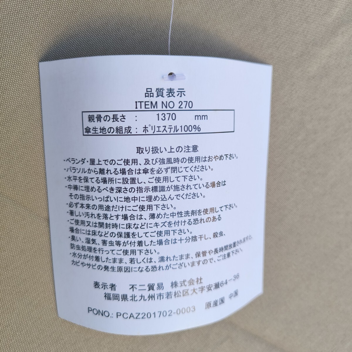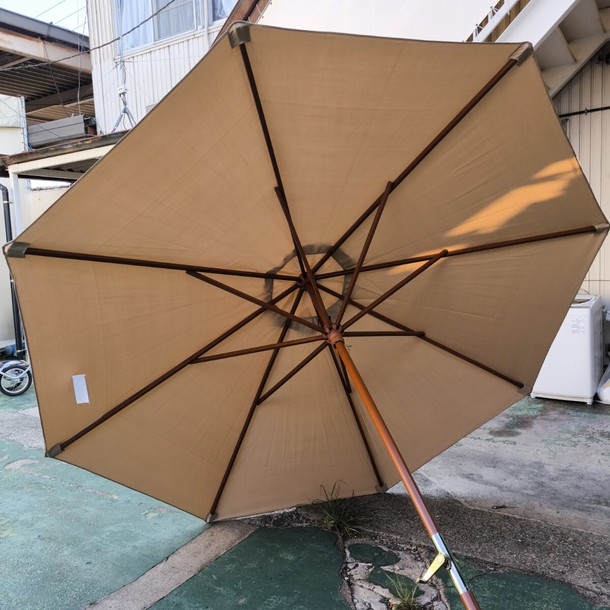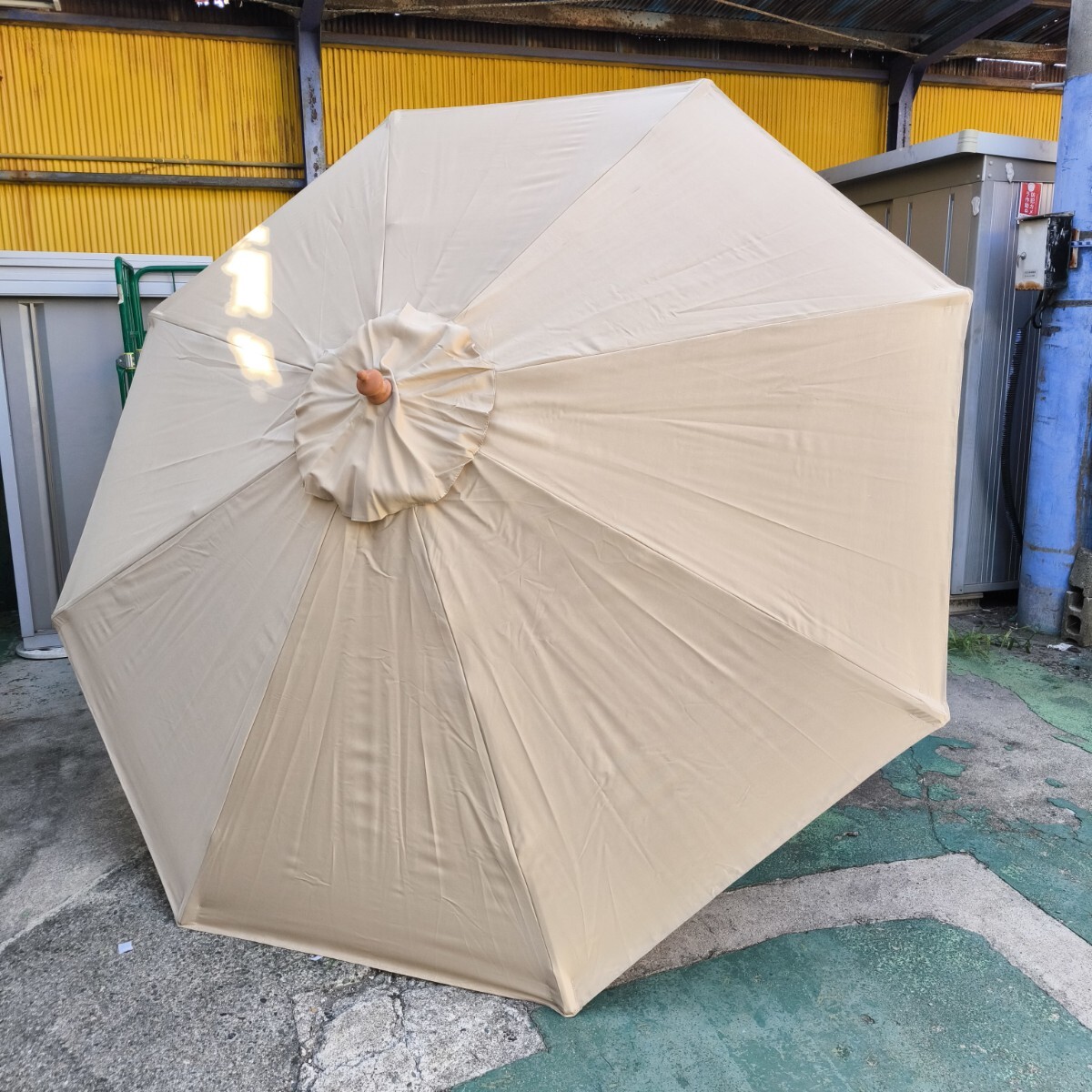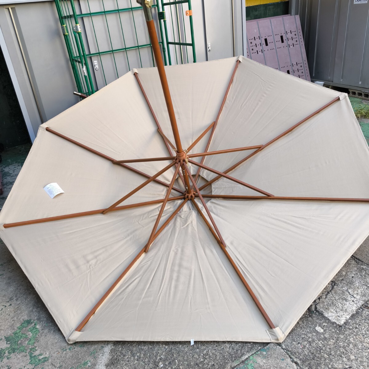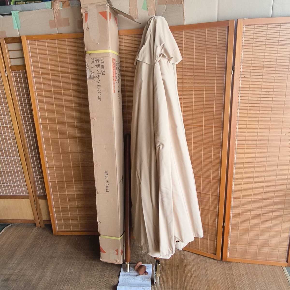 ◎【木製パラソル ⑤】未使用品 引き上げ品 270cm用 パラソル 不二貿易 アイボリー 保管によるキズ汚れあり レジャー アウトドア 268-30