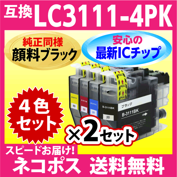 ブラザー brother 互換インクカートリッジ LC3111-4PK × 2セット 純正同様 顔料ブラックと染料カラー