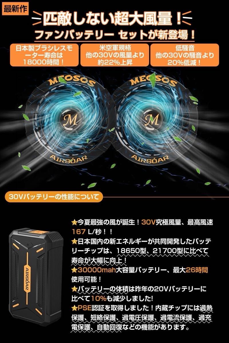 【2025最新作・30Vすごいファンバッテリー セット】日本の職人精神!毎年自己突破を続けている、日本の職人による丁寧な開発企画、30Vの超強力風力が登場!最高風力は昨年の20Vから30Vに上昇し、風力も従来の1.7倍、最大風速は167L/秒に達し、体を急速に冷やすことができ、最も快適な状態に達することができます。