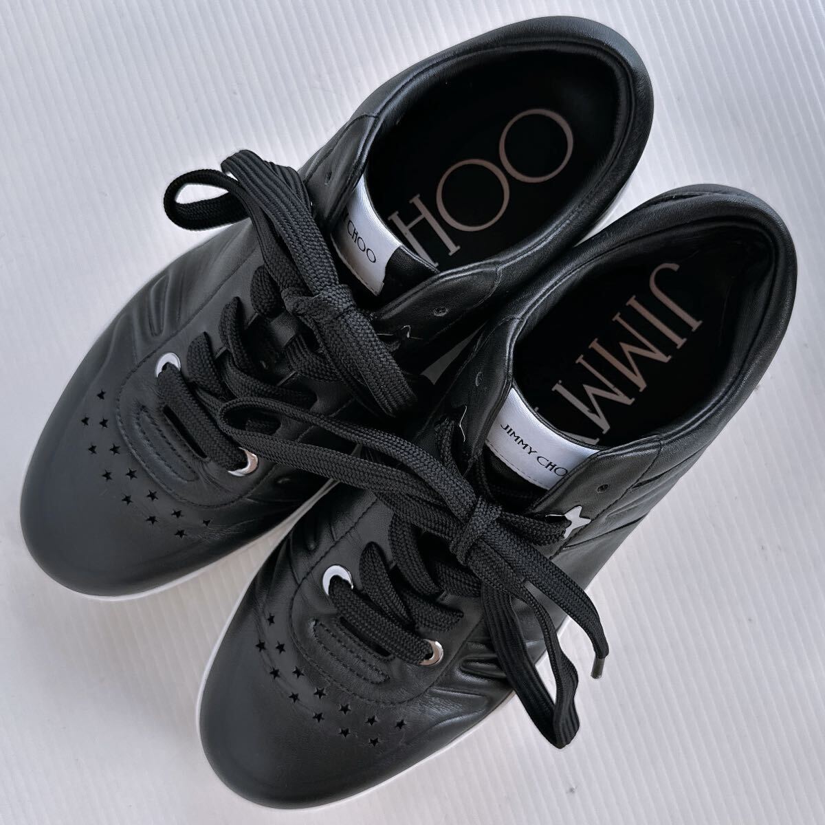 JIMMY CHOO(ジミー チュウ)のブラックレザーに星型装飾のスニーカーです。