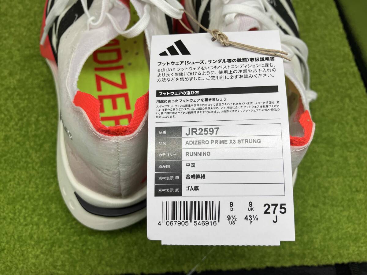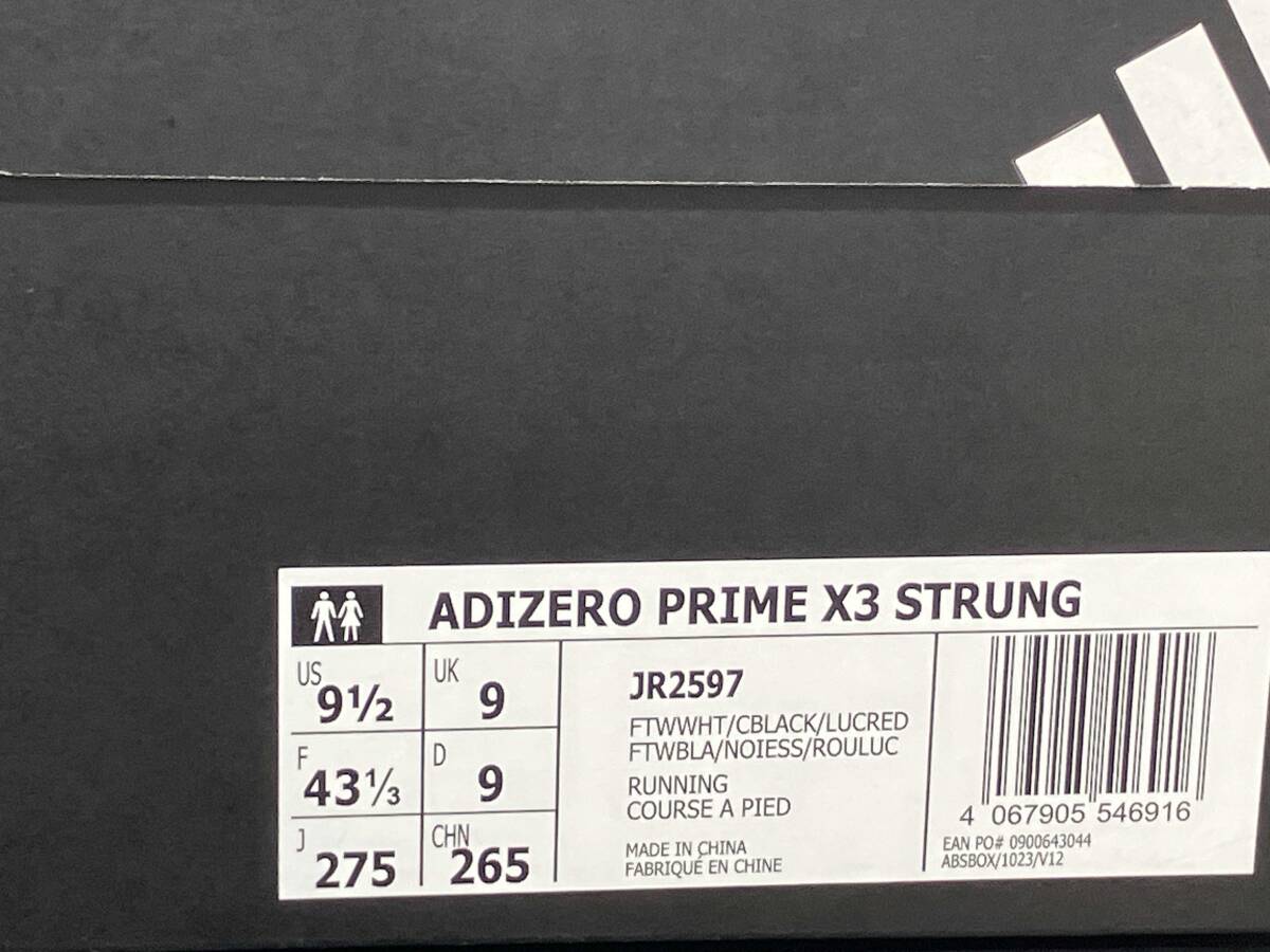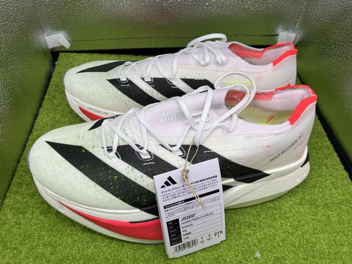商品の状態は画像をご確認下さいませ。 付属品は画像の物が全てです。 【タグ付き】 adidas ADIZERO PRIME X3 STRUNG 品番:JR2597 サイズ27.5cm |