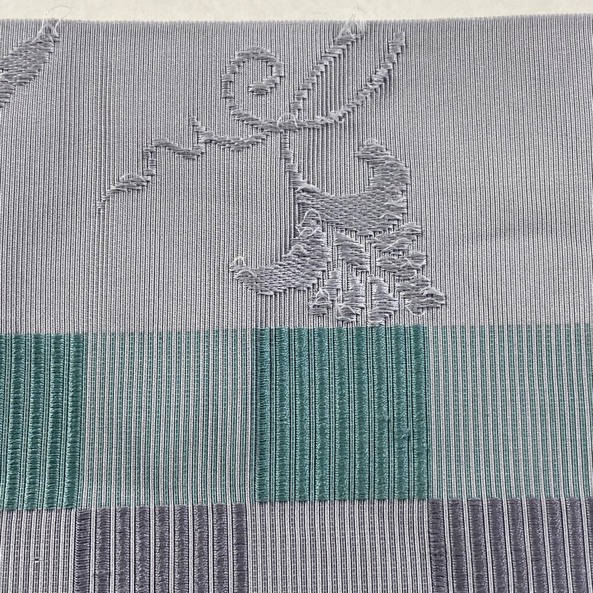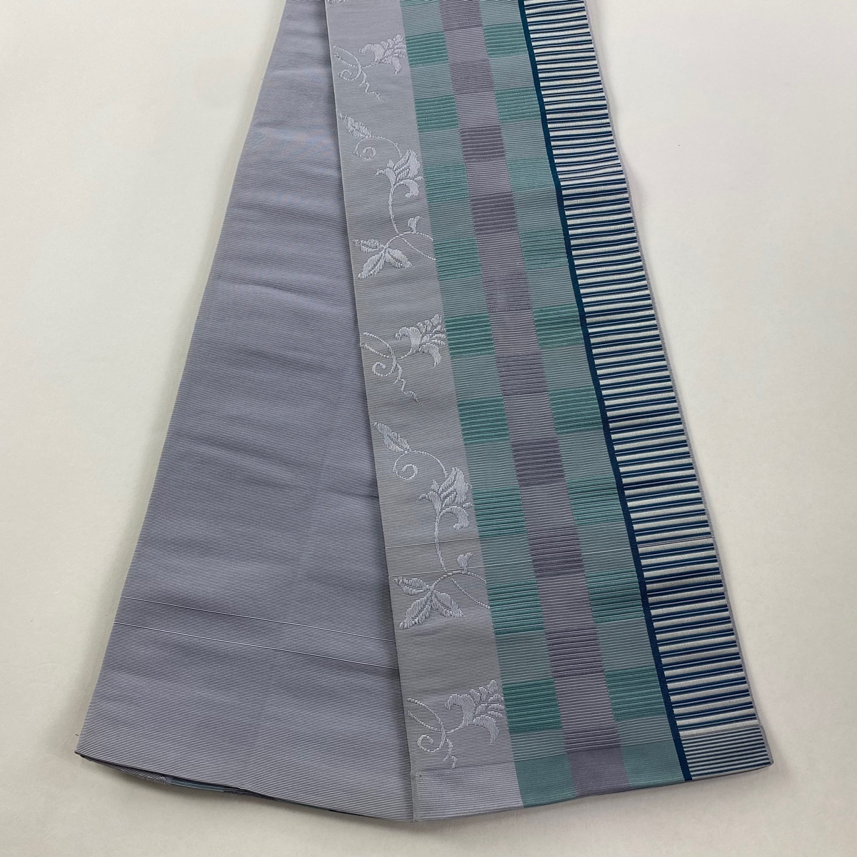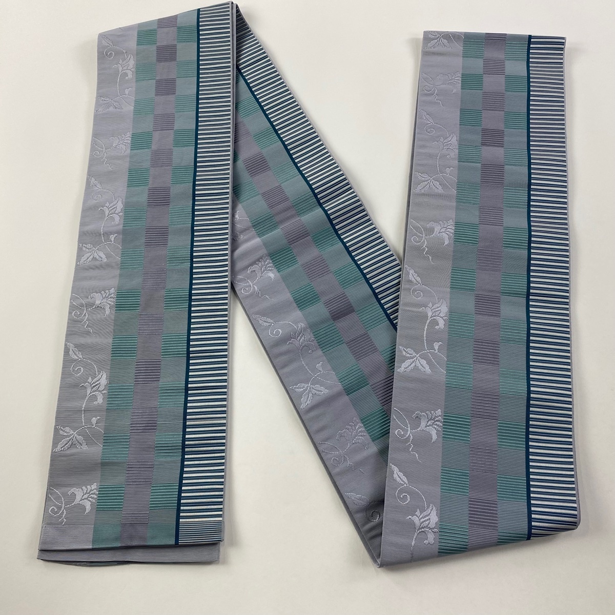 半幅帯 秀品 花唐草 市松模様 灰色 正絹 【中古】 |