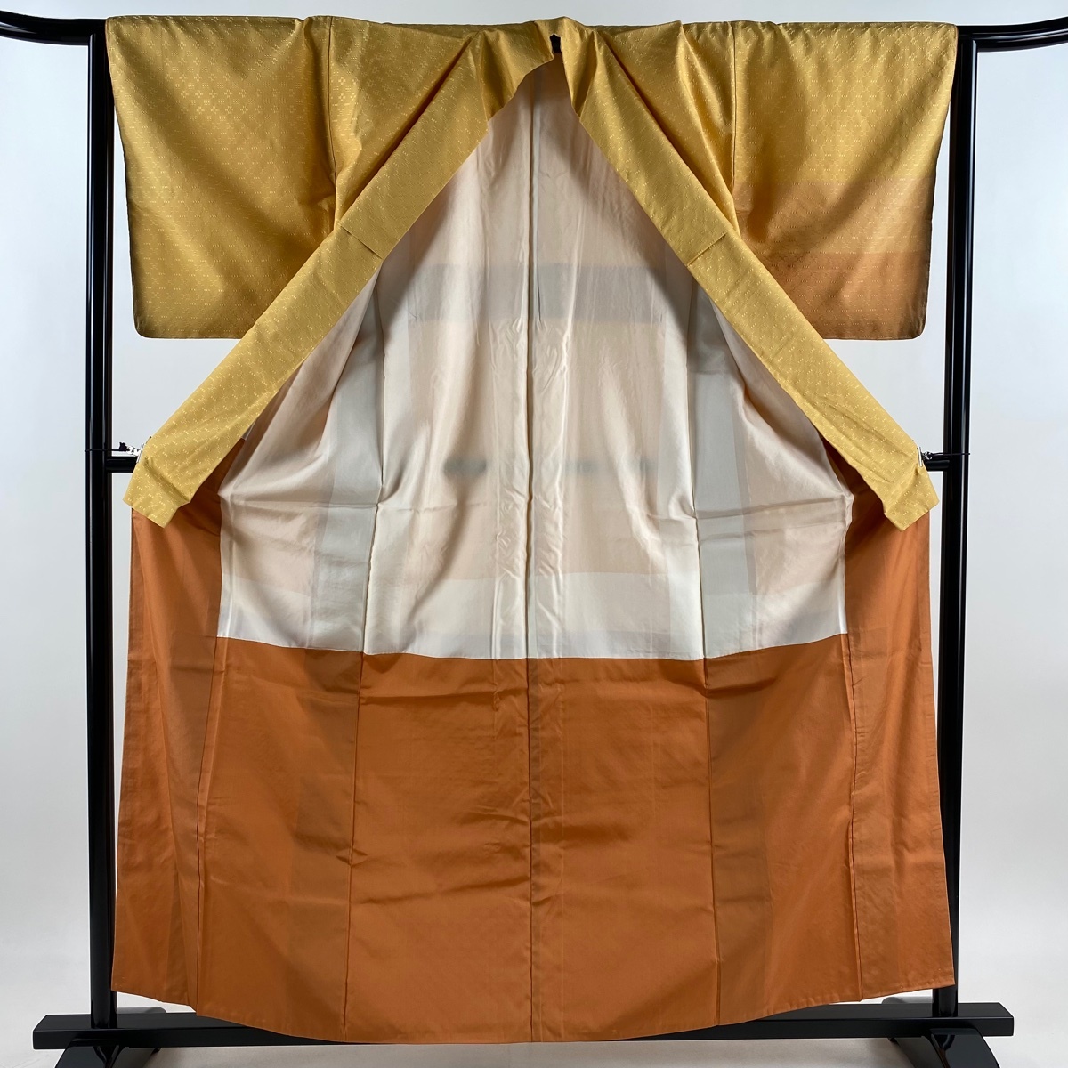 | 付下げ 美品 名品 紬地 幾何学 染め分け オレンジ 袷 身丈158 裄丈65 M 正絹 【中古】 |