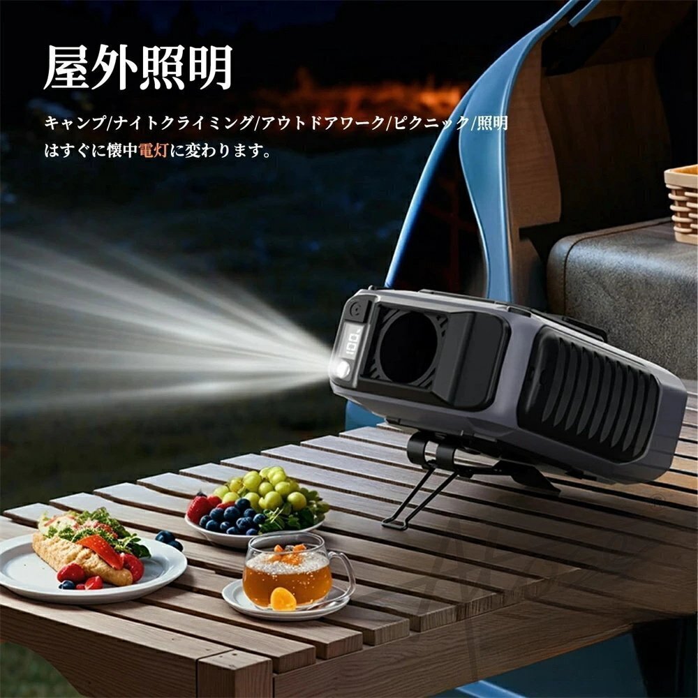 腰掛け扇風機 扇風機 10000mAh大容量 LED電量表示 5段階風量 USB充電式 SOSライト付き 熱中症対策 首掛け/手持ち/腰掛け アウトドア 山登り