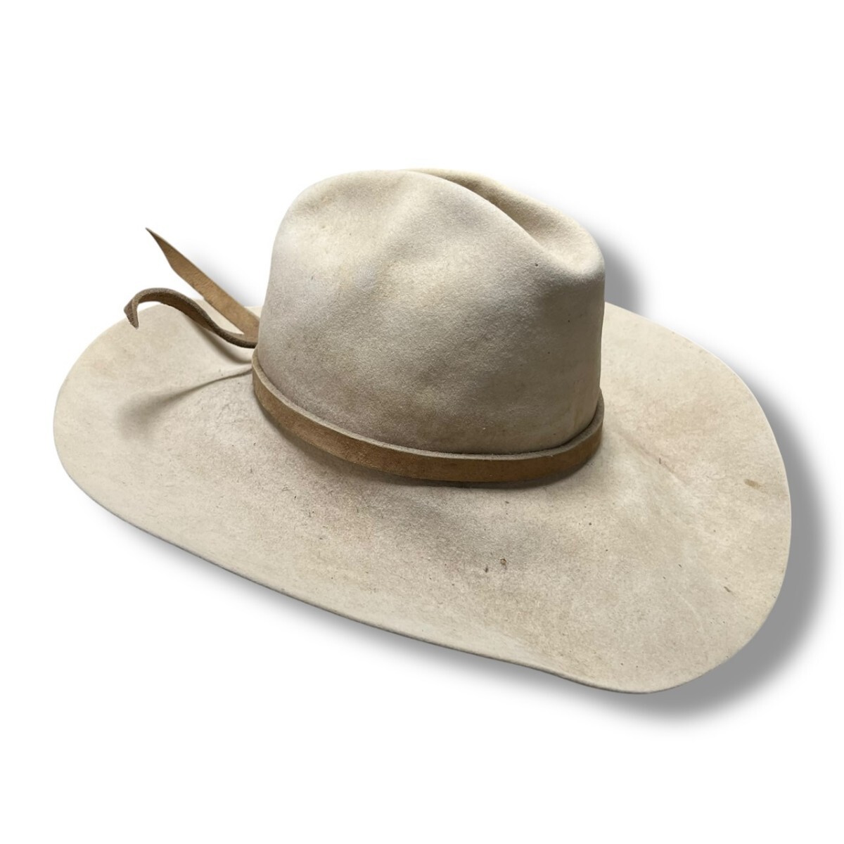 表記が消えて見辛いですがハットの中でも最高級グレードのビーバーの毛を使った物になります。またビンテージハットで58cm以上のアジア人の被れる大きめサイズは次に見つかることはなかなか難しいと思うのでお早めにご決断ください。