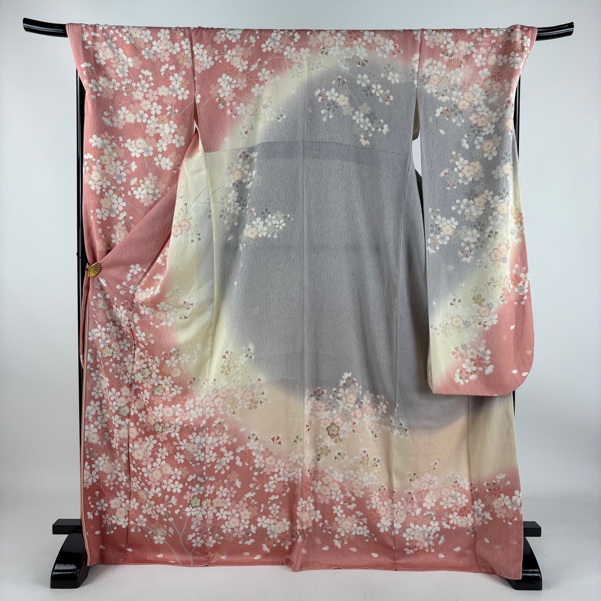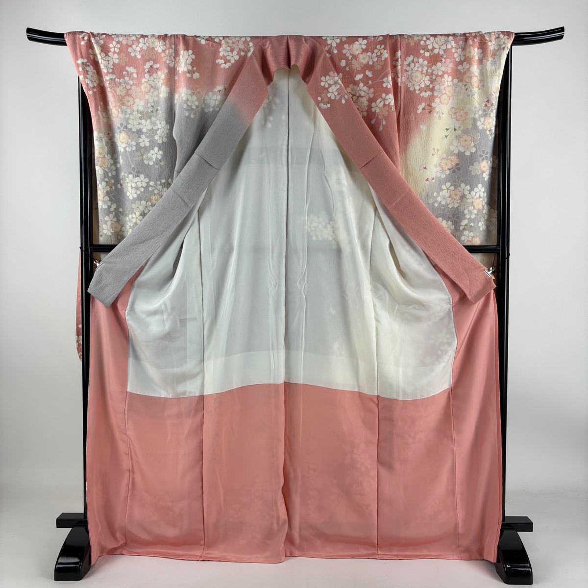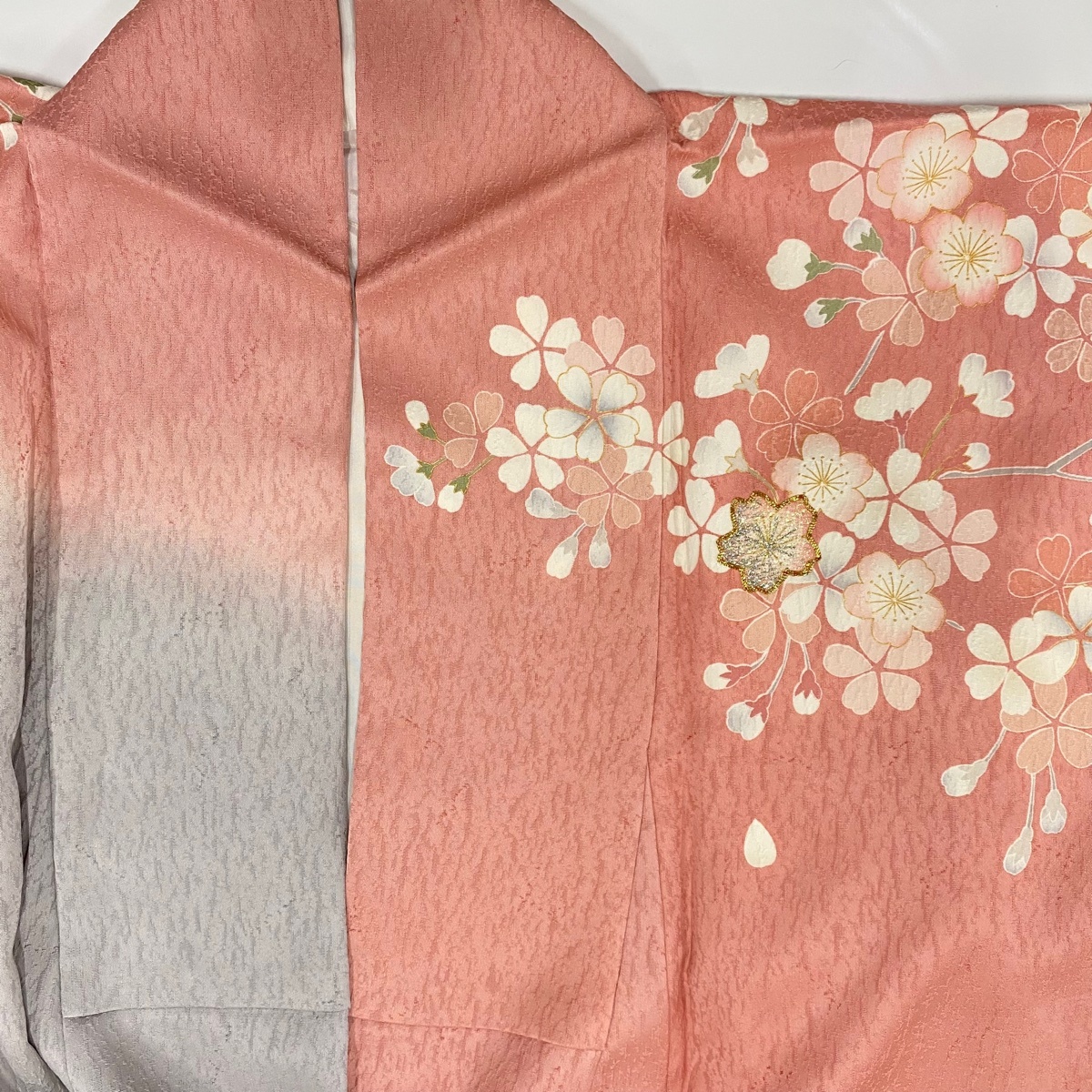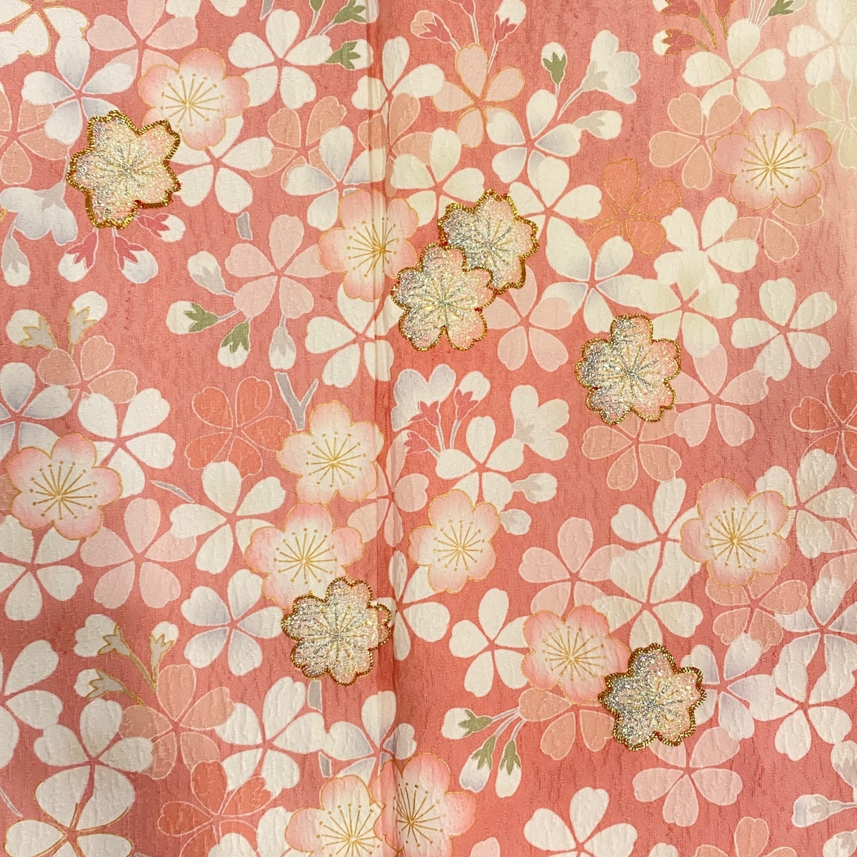 | 振袖 美品 名品 やまと 桜 花びら 箔 金糸 ピンク 袷 身丈171 裄丈73 L 正絹 【中古】 |