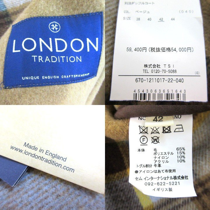 定価59400円ロンドントラディションlondon tradition新品タグ付英国製イギリス製メルトンダッフルコート茶L(qz12806) |