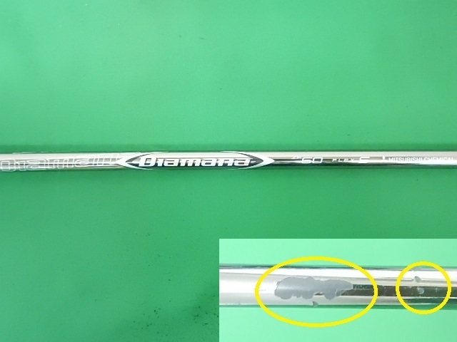 レンチなし グリップは純正で摩耗してます。 フェース面は打球傷、少々ございます。 クラウン部分はフェース側に小さな塗装剥がれ、テンプラ傷、細かいこすれ傷、若干ございます。 シャフトはヘッド側に塗装剥がれ、こすれ傷少々ございます。 |