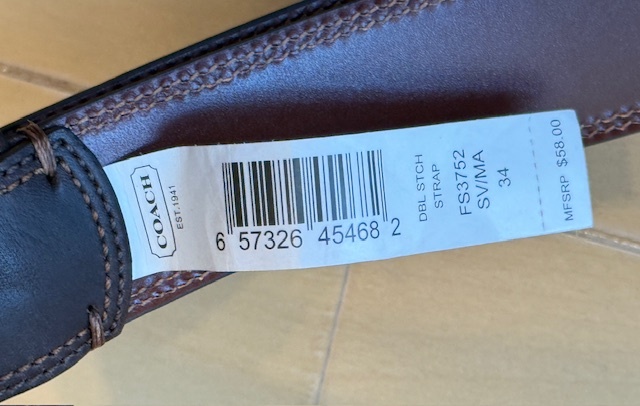 【未使用】COACH コーチ◆本革ベルト◆34インチ 濃茶