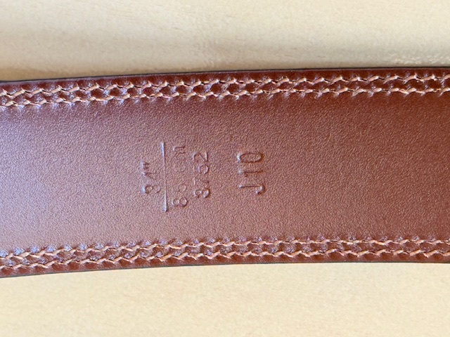 サイズ:34インチ(実測でバックルから穴まで82-92cm(5穴の最短-最長):素人採寸につき誤差はご容赦ください)