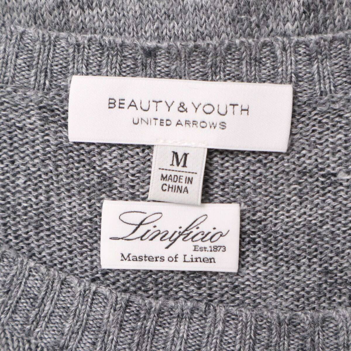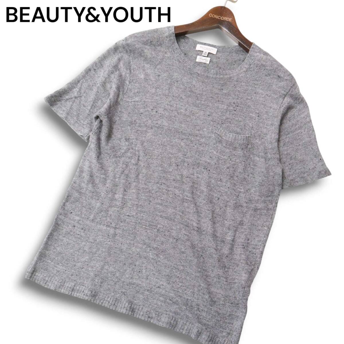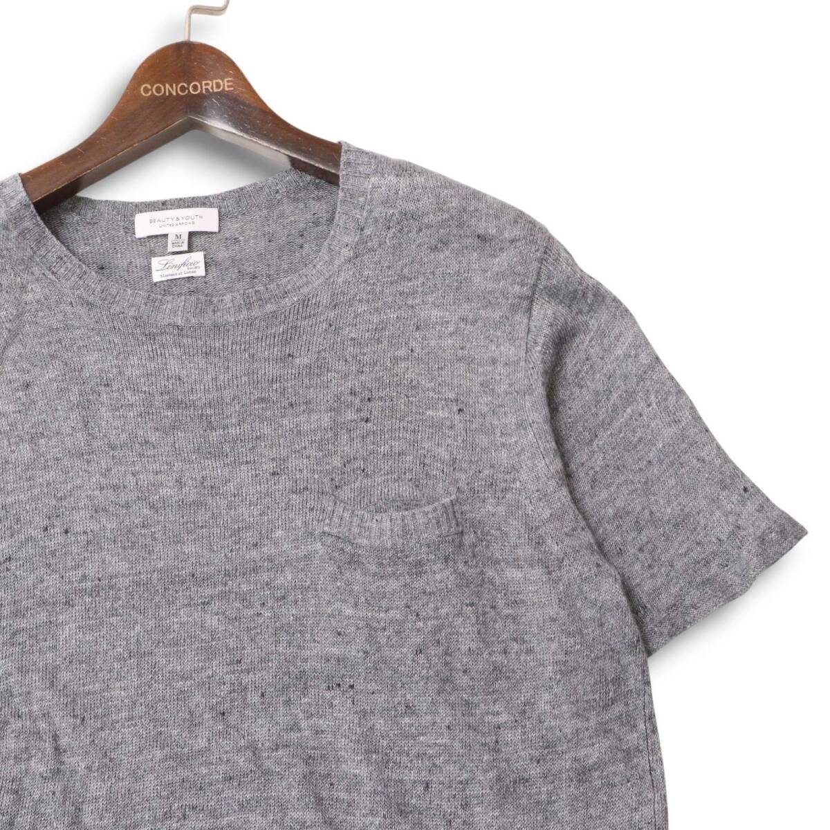 BEAUTY&YOUTH ユナイテッドアローズ 春夏 Linificio 麻★ リネン100% 半袖 サマー ニット Tシャツ セーター Sz.M メンズ 灰