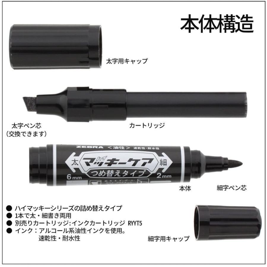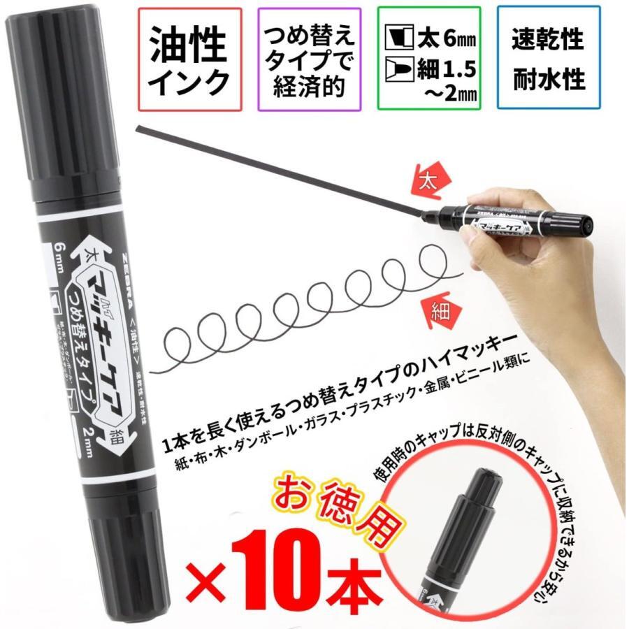 ゼブラ 油性ペン 油性マーカー ハイマッキーケア 詰替タイプ 黒 10本 B-YYT5-BK