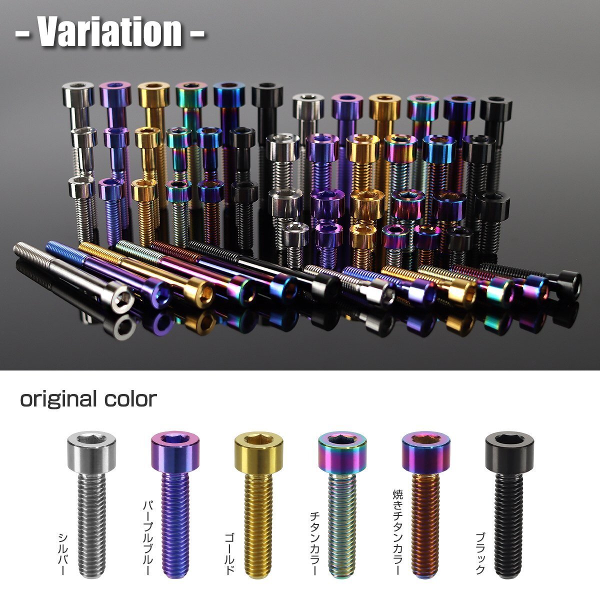 | 64チタン合金 スリムヘッド キャップボルト 金属の中でも軽量、高剛性、対候性に優れた64チタン合金(Ti6AI-4V)を採用。 ドレスアップにも最適なボルトです。 |