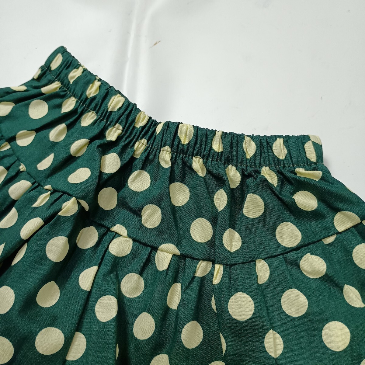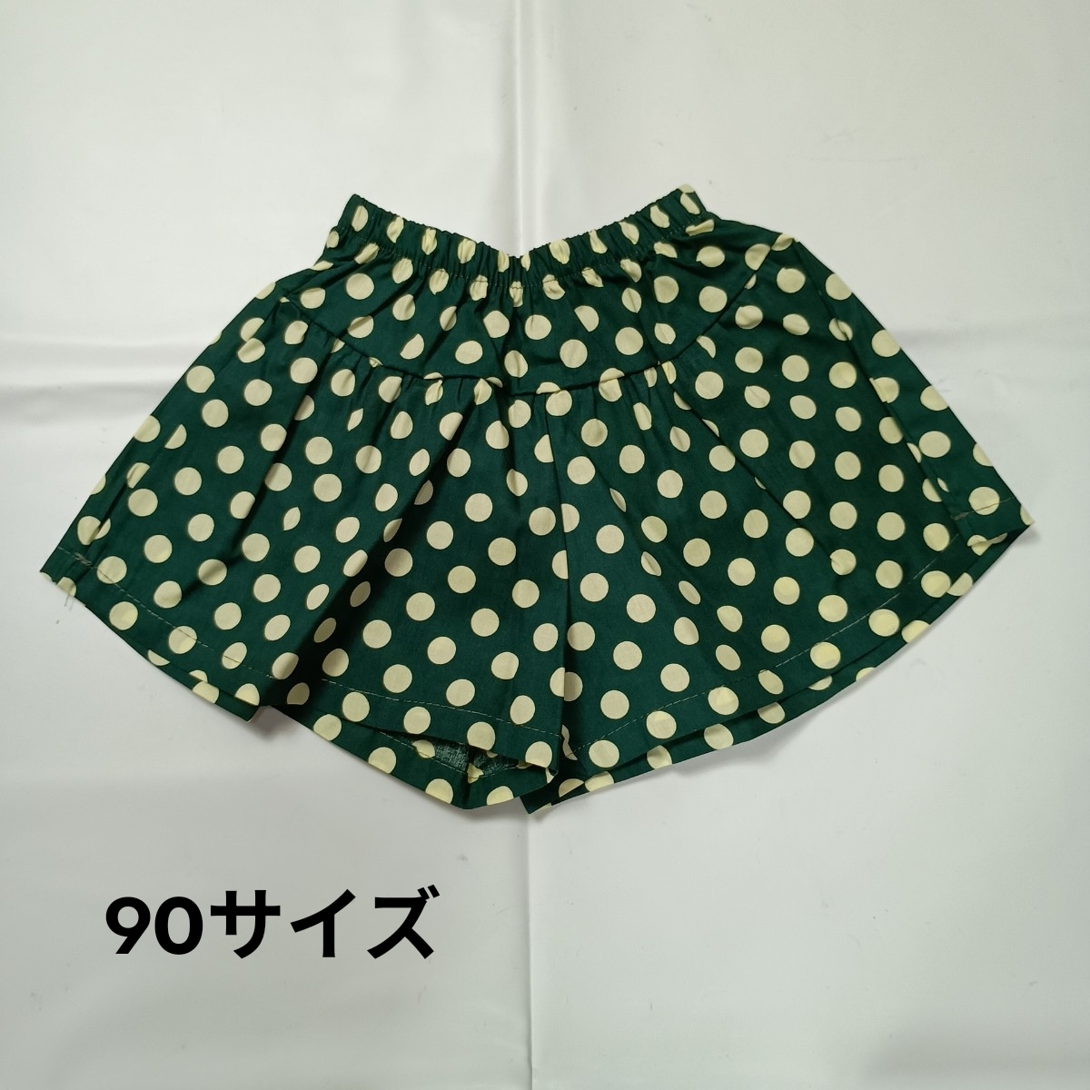 【未使用】90 幼児服 ベビー服 子供服 キュロット グリーン 緑 ドット 水玉 夏服 シンプル ウエスト 総ゴム