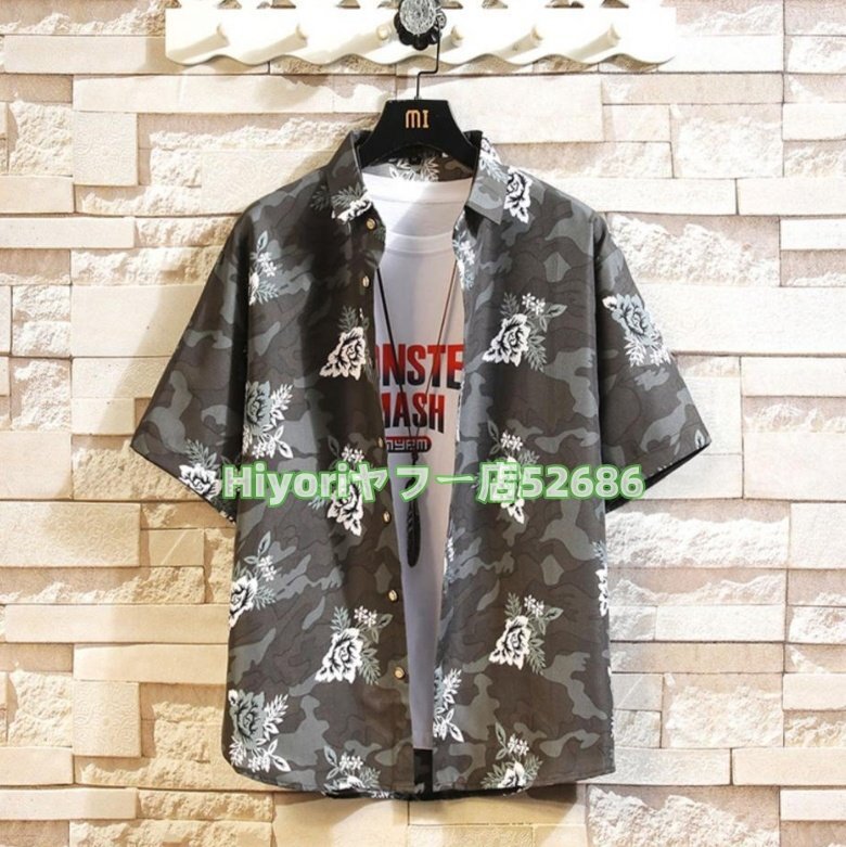 新入荷☆メンズ夏物 デジタルプリント 半袖シャツ ゆったりフィット カジュアル 翻領シャツ ポリエステル 薄手 半袖