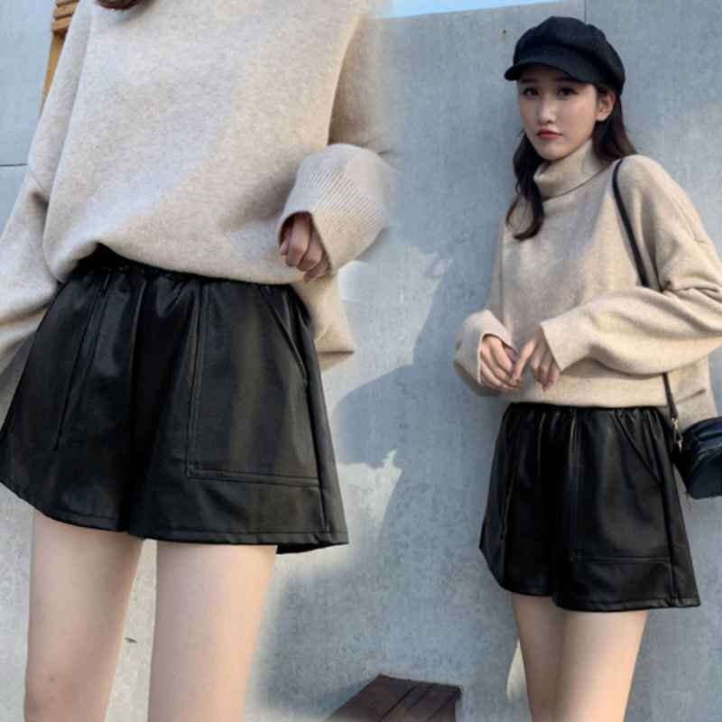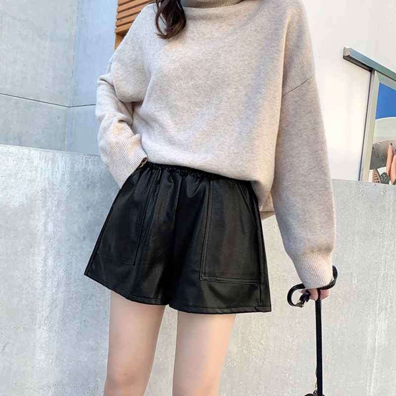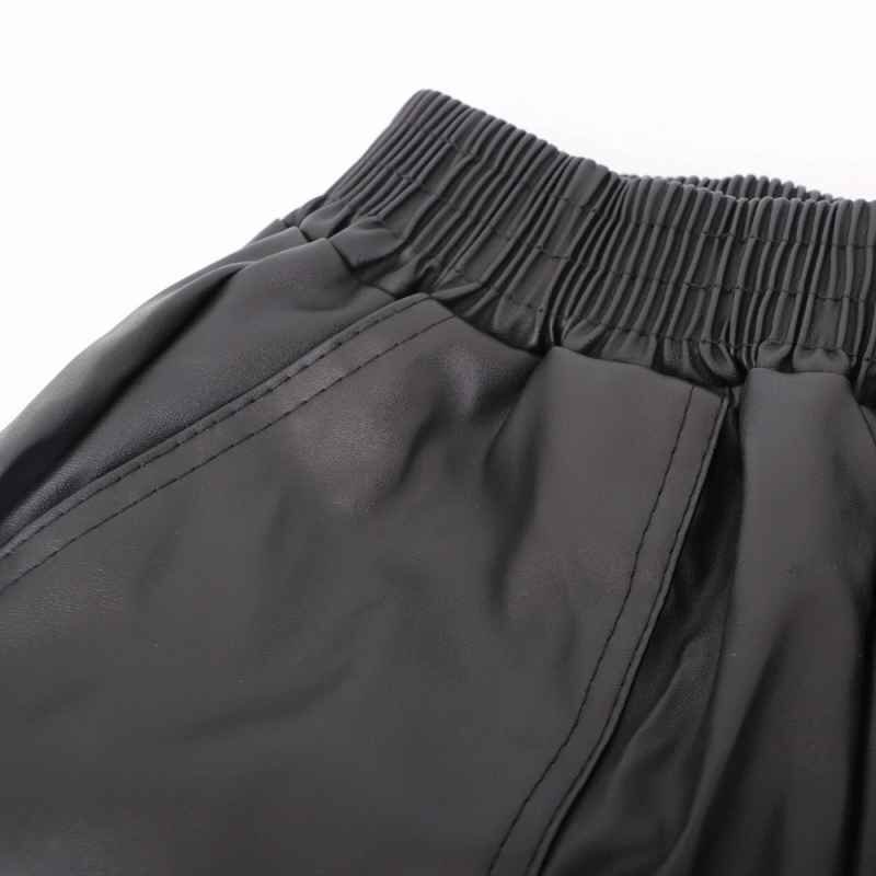 艶のある上質な柔らかい生地感、COOLな印象を放つエコPUショートパンツ