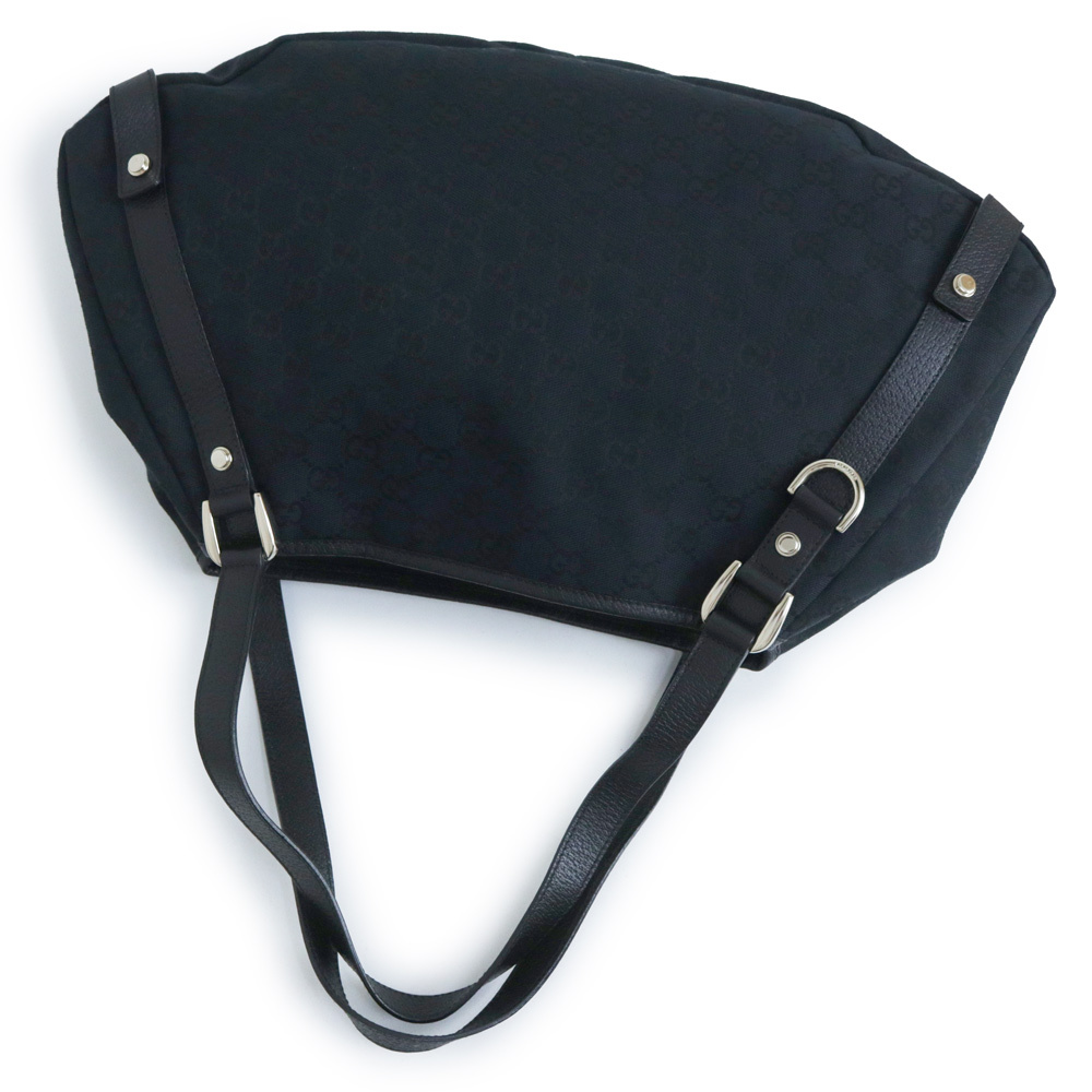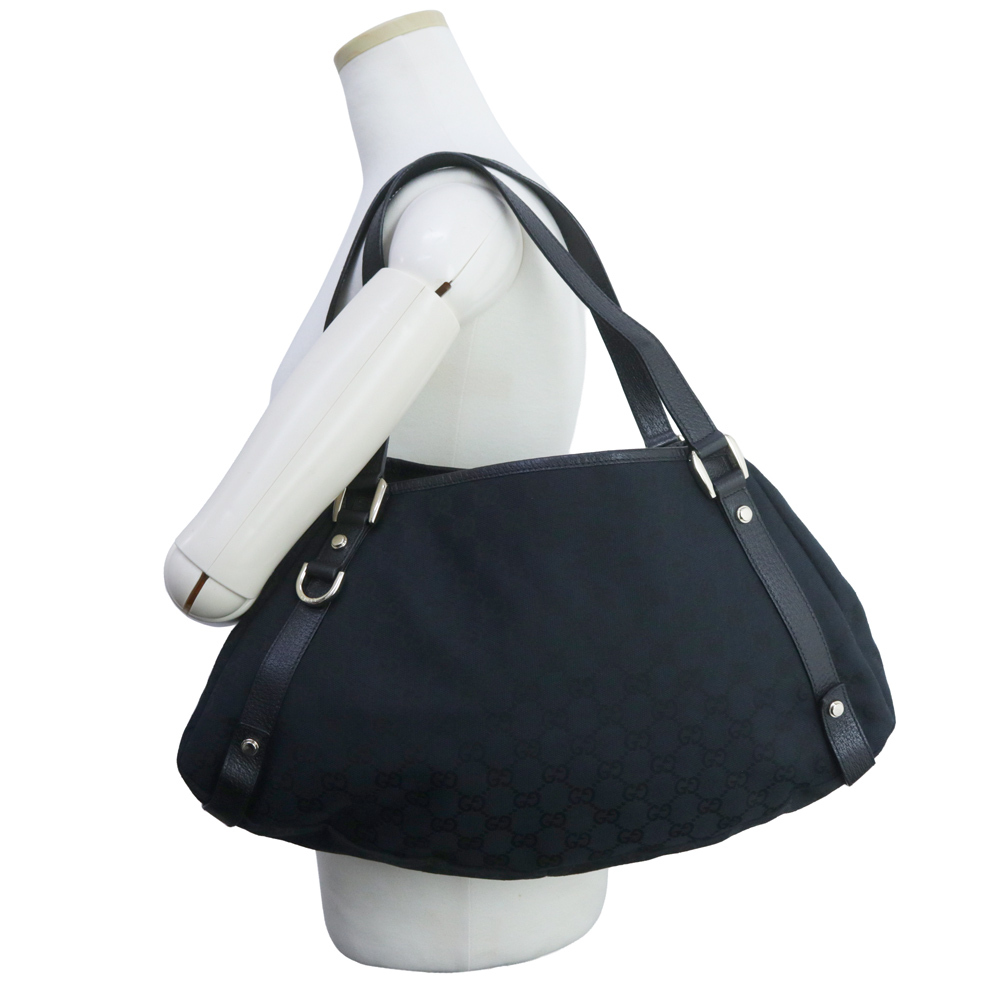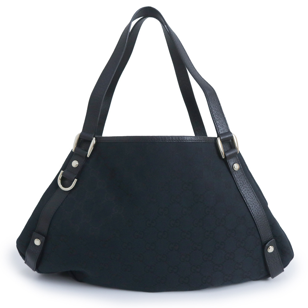(中古)グッチ GUCCI アビー ハンドバッグ GGキャンバス カーフスキン レザー ブラック ライトゴールド金具 130736