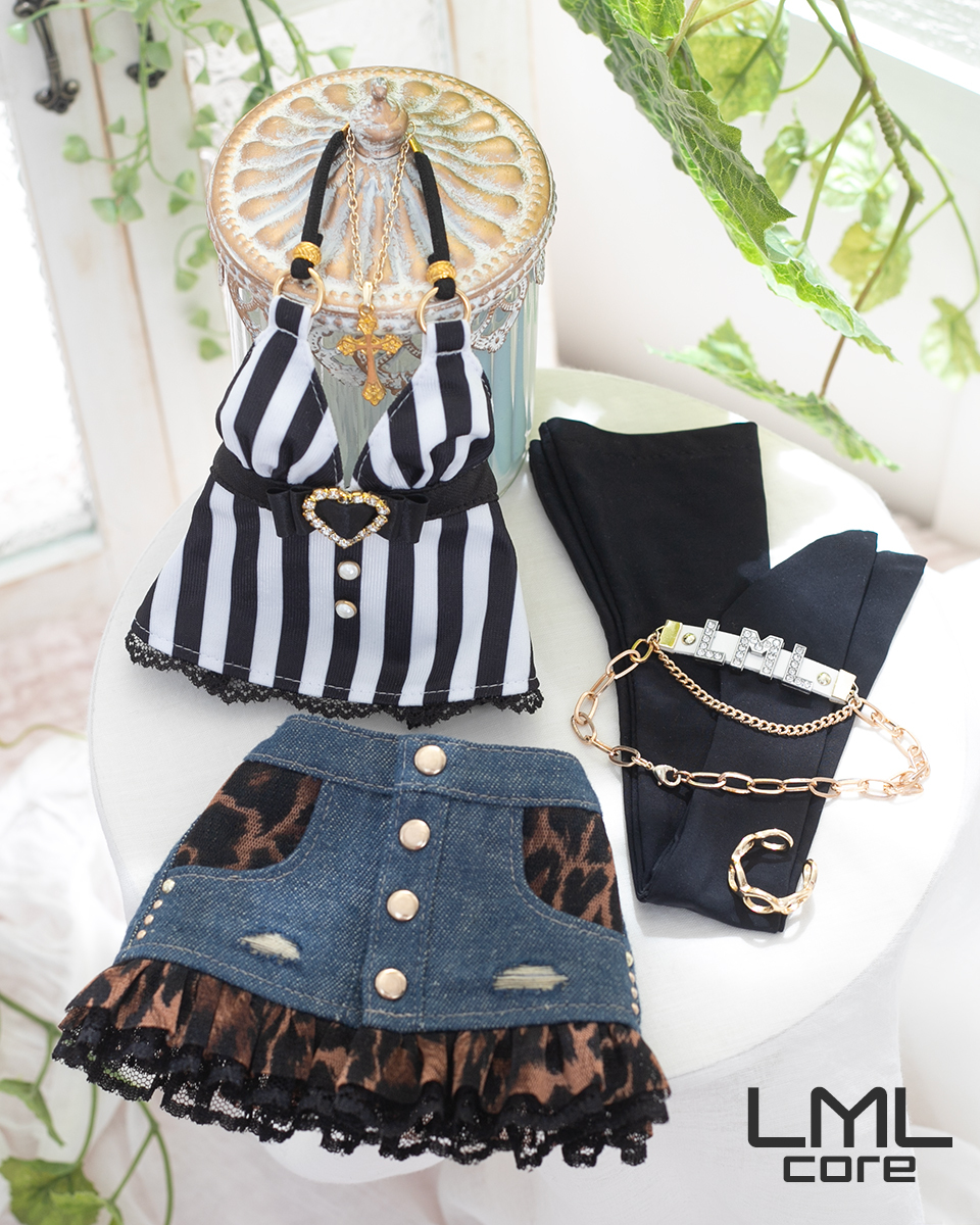 【LMLcore】DD M胸サイズ ストライプホルターキャミ&デニムスカートコーデセット