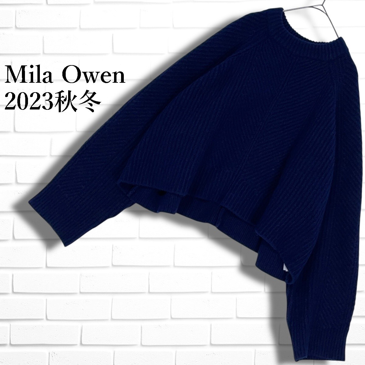 ◆美品 23AW◆ Mila Owen ミラオーウェン ウール ブレンド ニット ゆったり 長袖 短丈 セーター 紺 ネイビー レディース 送料無料 0235I◇