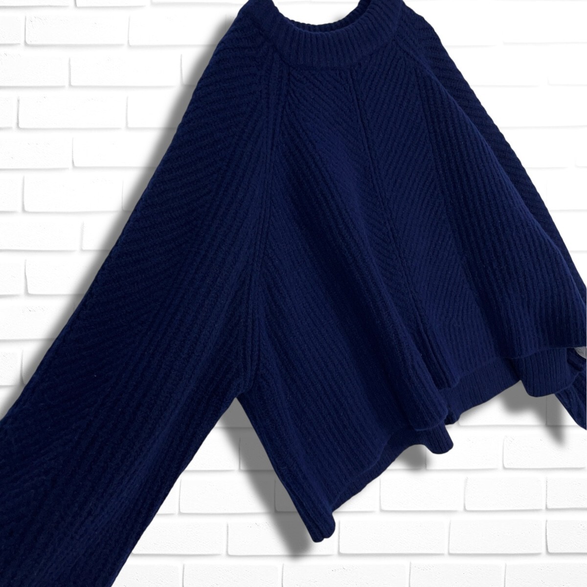 ◆美品 23AW◆ Mila Owen ミラオーウェン ウール ブレンド ニット ゆったり♪ 長袖 短丈 セーター 紺 ネイビー レディース ◆送料無料◆ 0235I◇