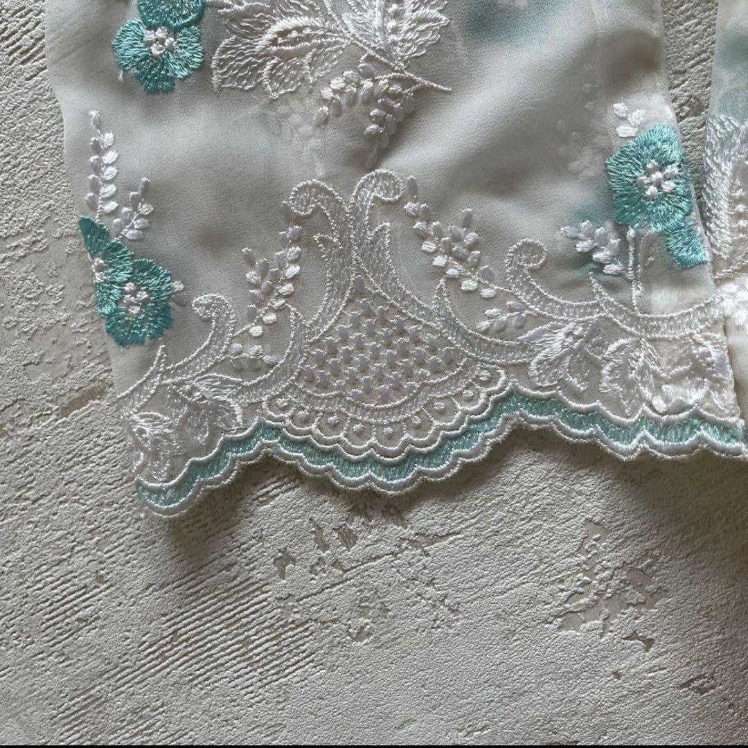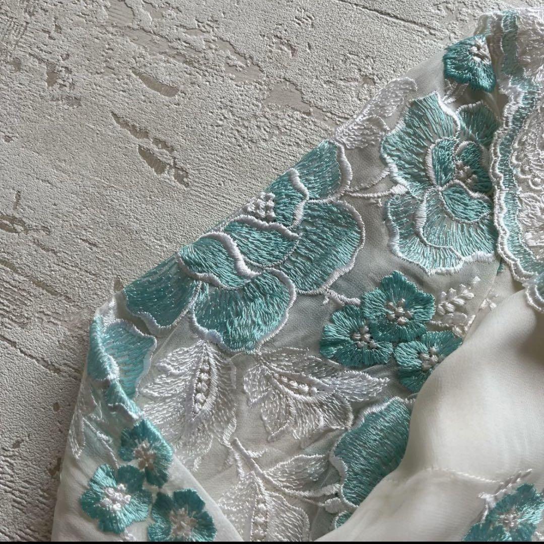 上品なホワイト地にブルーの花柄刺繍レースが映える、エレガントなロングワンピースです。袖やスカート部分に透け感のあるレースを贅沢に使用し、華やかで女性らしい印象を演出。結婚式や二次会などのお呼ばれはもちろん、デートや特別なお出かけにもぴったりです。落ち着いた色合いなので夏から秋にかけて長く着用いただけます。裏地付きで安心の着心地。大人の上品さと可愛らしさを兼ね備えた一枚で、特別なシーンをより華やかに彩ってくれます。