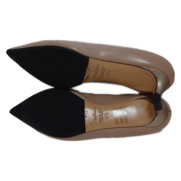 マックスマーラ Max Mara パンプス 37 1/2 - レザー ピンクベージュ×ゴールド レディース アウトソール張替済 靴