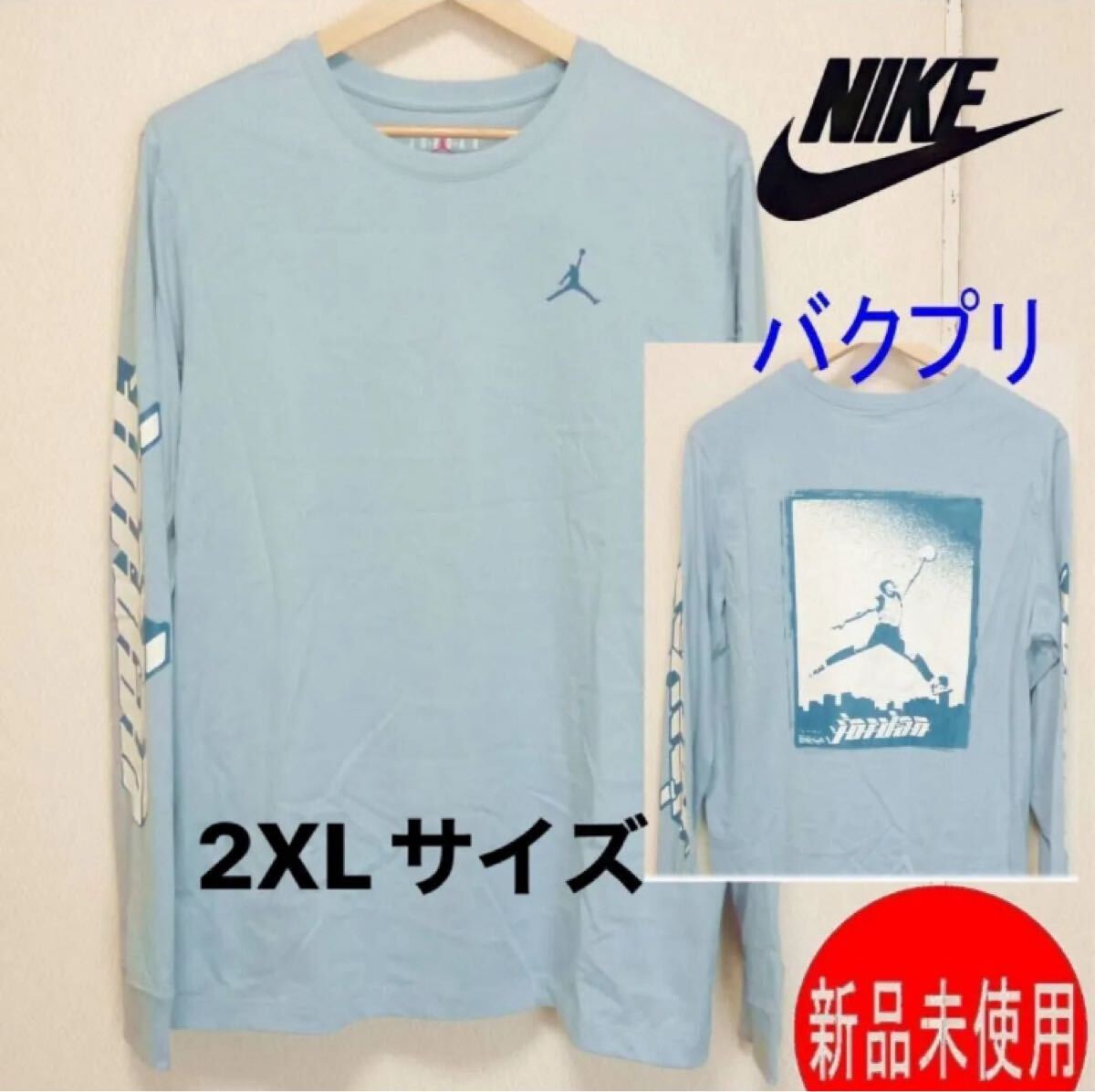 大きいサイズ新品(メンズ2XL)ナイキ NIKE ブルーグレー バクプリ/バックプリント 袖ロゴ ロンT 長袖Tシャツ