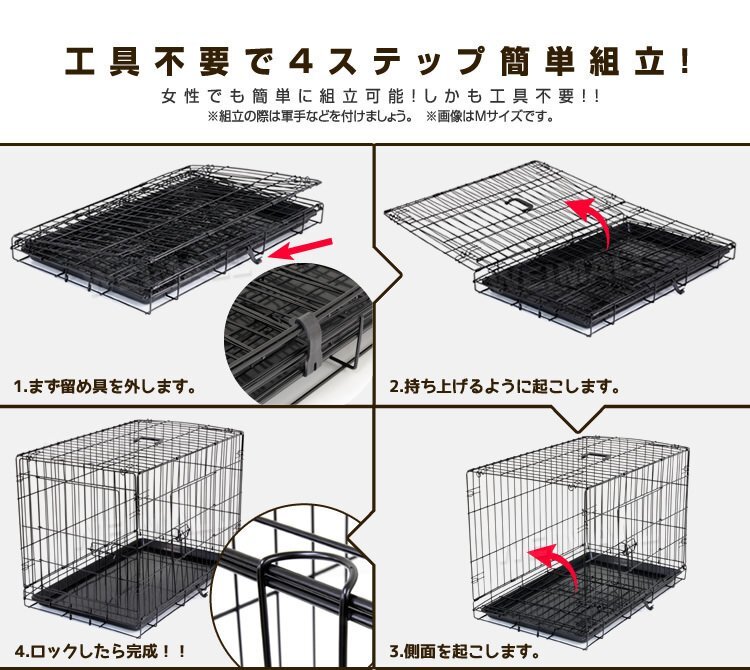 お留守番や、しつけに最適! 移動に便利な折りたたみ式ペットケージ。 本体はネジ等を一切使用せず、パタパタっと開くだけの簡単組み立て式です。 折りたたむことができるので、使わない時の収納や移動する時もラクラク! 日頃からケージを自宅で使用し、ワンちゃんも使い慣れることで、お出かけ先でも安心して休むことができ、ストレスの軽減にもつながります。 留守中やワンちゃんから目を離す時、いたずらによる怪我や事故の防止にも役立ちますし、緊急時の避難用にも重宝します。 【商品仕様】 カラー:ブラック サイズ(約):45cm×74.5cm×54.5cm 材質:スチール、ABS樹脂 重量(約):5.9kg 参考サイズ:柴犬 等 【注意事項】 ・こちらの商品は中型犬用のケージとなります。 ・ご注文時サイズは必ずご確認ください。 ・参考サイズはあくまで目安です。 ・本製品は屋内専用です。屋外で使用すると錆や変色の原因となります。 ・サイズ間違い、イメージとの違いによる返品、交換は一切行っておりません。 ・海外製品で、簡易梱包での輸入のため風防に擦れや多少の小キズなどがある場合がございますが、商品自体には問題ありませんのでご了承下さい。 ・仕様・デザインは改良のため予告なく変更することがあります。 |