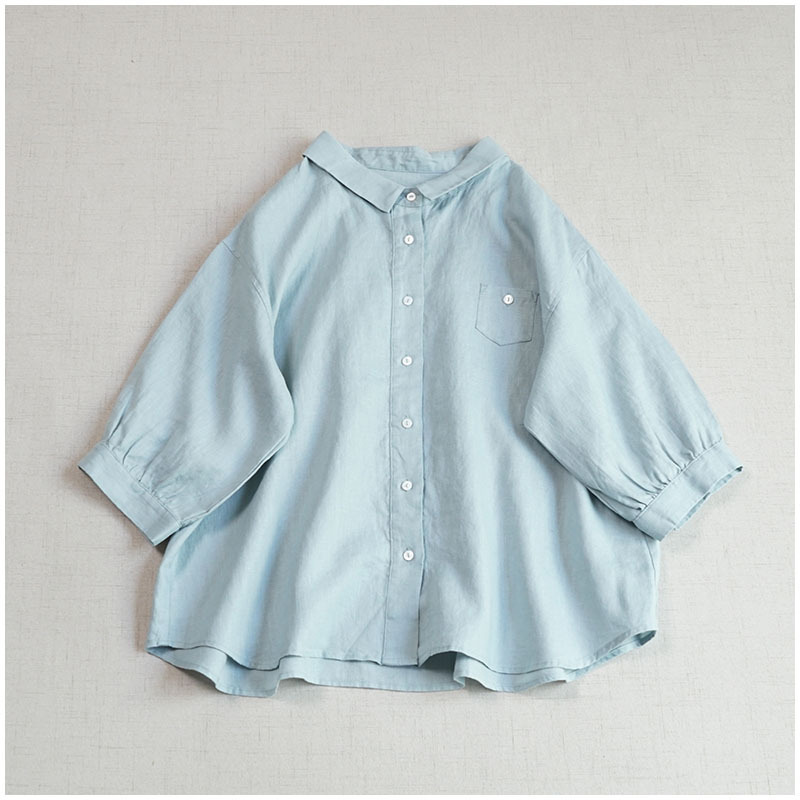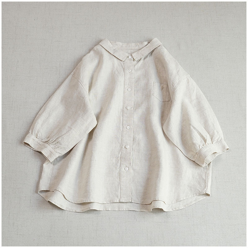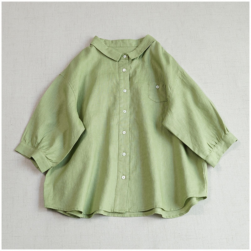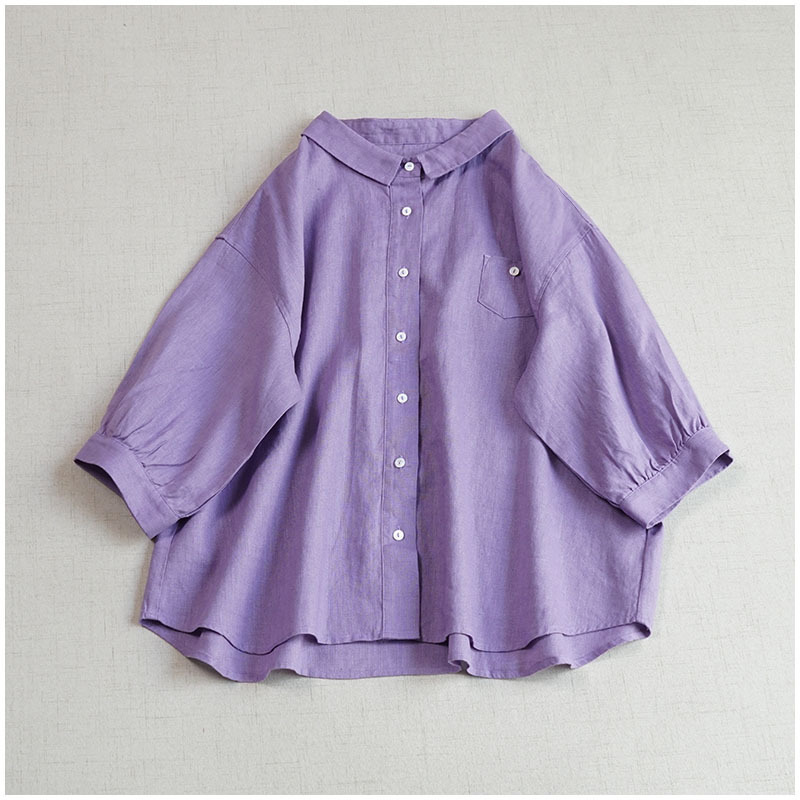 新品チュニック ワイシャツ トップス 麻100% ふんわり ゆったり オシャレ フリーサイズ ナチュラル 通気性手触り抜群 純色 ピンク