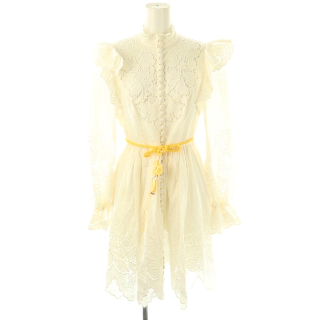 ジマーマン ZIMMERMANN シェルベルト付きリネンスカラップレースワンピース 膝丈 0 ホワイト /HK ■OS レディース