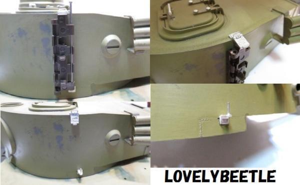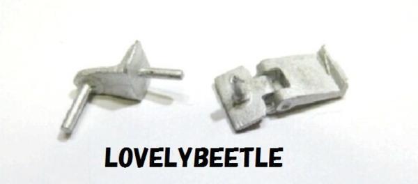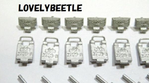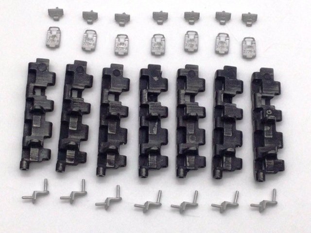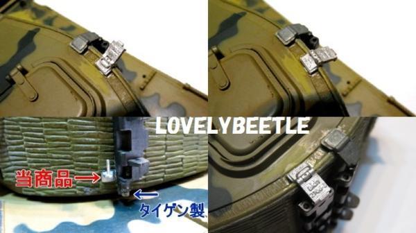 ラブリービートル特製 1/15~1/16 タイガー1型戦車用 金属製 ハイグレード砲塔側面予備キャタピラホルダー & 金属製キャタピラ 7コマセット タイガー1型の砲塔側面に取り付ける予備キャタピラホルダーです。 初期型(43年4月以降)、中期型、後期型、最後期型には必須のアイテム。 過去にタイゲンやWASAN のタイガー1型において、この予備キャタピラホルダーは再現されていましたが・・・ モールドがイマイチ(涙)。タイゲン製は下部のホルダーの取り付け位置が間違っているので・・・砲塔旋回時に車体上部の工具に干渉します。 WASAN製はキャタの向きが上下アベコベ(汗)。さらに予備キャタピラはホルダーと一体になっており、取り外しも不可。 砲塔側面の予備キャタピラホルダーはすごく目立つ部分です。 是非、あなたのお気に入りのタイガー1型にこの究極とも言えるパーツを取り付けて、更なるグレードアップを施してください。 こちらのパーツは1/16のみならず、バンダイの1/15にも応用できます。 ■オススメポイント■ ・実物同様の超リアルなディテール ・実物同様の刻印入り ・他社製品では省略されていた手すりも再現 ・溶接跡表現つき ・上部ホルダーは可動式にすることが可能 ・予備キャタピラは脱着可能にすることができます ・砲塔に穴あけし、軸を差し込んで接着しますのでホルダーを強固に固定できます ・可動式にする際、ピンバイスによる穴あけが容易にできます ■内容物■ 1・タイガー1型 金属製ハイグレード砲塔側面予備キャタピラホルダー 7個(1両分) 2・タイゲン タイガー1型戦車ハイグレード金属キャタピラ 7コマ ■取り付け可能車種■ ・1/16タイガー1型(メーカー問わず) ・1/15タイガー1型(バンダイ) ■取り付け方法■(ホルダーを可動させない場合) 1・金属製予備キャタピラホルダーのバリを金属ヤスリなどで丁寧に削り取る。 2・資料集や写真集を参考にしてホルダーの取り付け位置を決める。 3・1mmのピンバイスで砲塔に差込穴を開口。 4・ツィメリートコーティングが施してある車両の場合、コーティングの厚みを考慮して砲塔上部の 穴あけ箇所は少しだけ外側にずらしてください。 5・微量の瞬間接着剤で上部ホルダーのヒンジ部を固定して、ホルダーを砲塔に仮固定。 6・取り付け位置関係や予備キャタピラの装着具合を確認。 7・瞬間接着剤をしっかり塗って砲塔→ホルダー→予備キャタピラを頑丈に固定。 (超強力瞬間接着剤&硬化スプレーの組み合わせがベスト) ■取り付け方法■(ホルダーを可動させ、予備キャタも脱着可能にする場合) ※可動化の際に別途必要なもの・・・直径1ミリの真鍮棒 1・金属製予備キャタピラホルダーのバリを金属ヤスリなどで丁寧に削り取る。 2・上部ホルダーのヒンジ部分に1mmピンバイスで穴あけ。 3・長さ5.3ミリぐらいにカットした真鍮棒(直径1ミリ)を埋め込み、ヒンジ部分を組み立てる。 4・資料集や写真集を参考にしてホルダーの取り付け位置を決める。 5・1mmピンバイスで砲塔に差込穴を開口。 6・ツィメリートコーティングが施してある車両の場合、コーティングの厚みを考慮して砲塔上部の 穴あけ箇所は少しだけ外側にずらしてください。 7・微量の瞬間接着剤でホルダーを砲塔に仮固定。 8・取り付け位置関係や予備キャタピラの装着具合を確認。 9・瞬間接着剤をしっかり塗って砲塔→ホルダーを頑丈に固定。 (超強力瞬間接着剤&硬化スプレーの組み合わせがベスト) 10・お好みに応じて予備キャタピラをセットする。 ★ワンポイント アドバイス ・ヒンジ部のグリス注入ポイントのクボミも0.5ミリのピンバイスで開口してあげるとよりリアルになります。 ・ヒンジ部分の穴あけの際、手すりを折らないようにご注意ください。 ・タイゲン製の予備キャタ→下部ホルダーの取り付け位置は間違っています。下部ホルダーを間違った場所に装着しないようにご注意ください。 ・予備キャタを脱着可能にした場合、走行させる時はホルダーと予備キャタを両面テープで固定してください。 ・ツィメリートコーティングが施してある車両の場合、コーティングの厚みを考慮して砲塔上部の穴あけ箇所は少しだけ外側にずらしてください。 ・写真集などでもお馴染みですが、予備キャタピラに連結軸を挿すとよりカッコよくなります。(1/15バンダイ製の画像参照) 画像3枚目は下部キャタピラホルダーとキャタピラの装着位置になります。 画像4枚目と6枚目はヘンロン製の1/16タイガー1型(初期型、コーティングシート装着車)に取り付けてみたところ。 画像7枚目はバンダイ製の1/15タイガー1型(初期型)に取り付けてみたところ。 ヘンロン製にもバンダイ製にも可動式に加工したホルダーを取り付けています。 ※画像4枚目、6枚目、7枚目に載っている戦車本体、8枚目のピンバイスは当商品には含まれませんので、ご注意下さい。 あなたの1/16戦車にこのグレードアップパーツを装着して、リアリティのある車両に仕上げてみてはいかがですか?! 未使用、新品ですが、