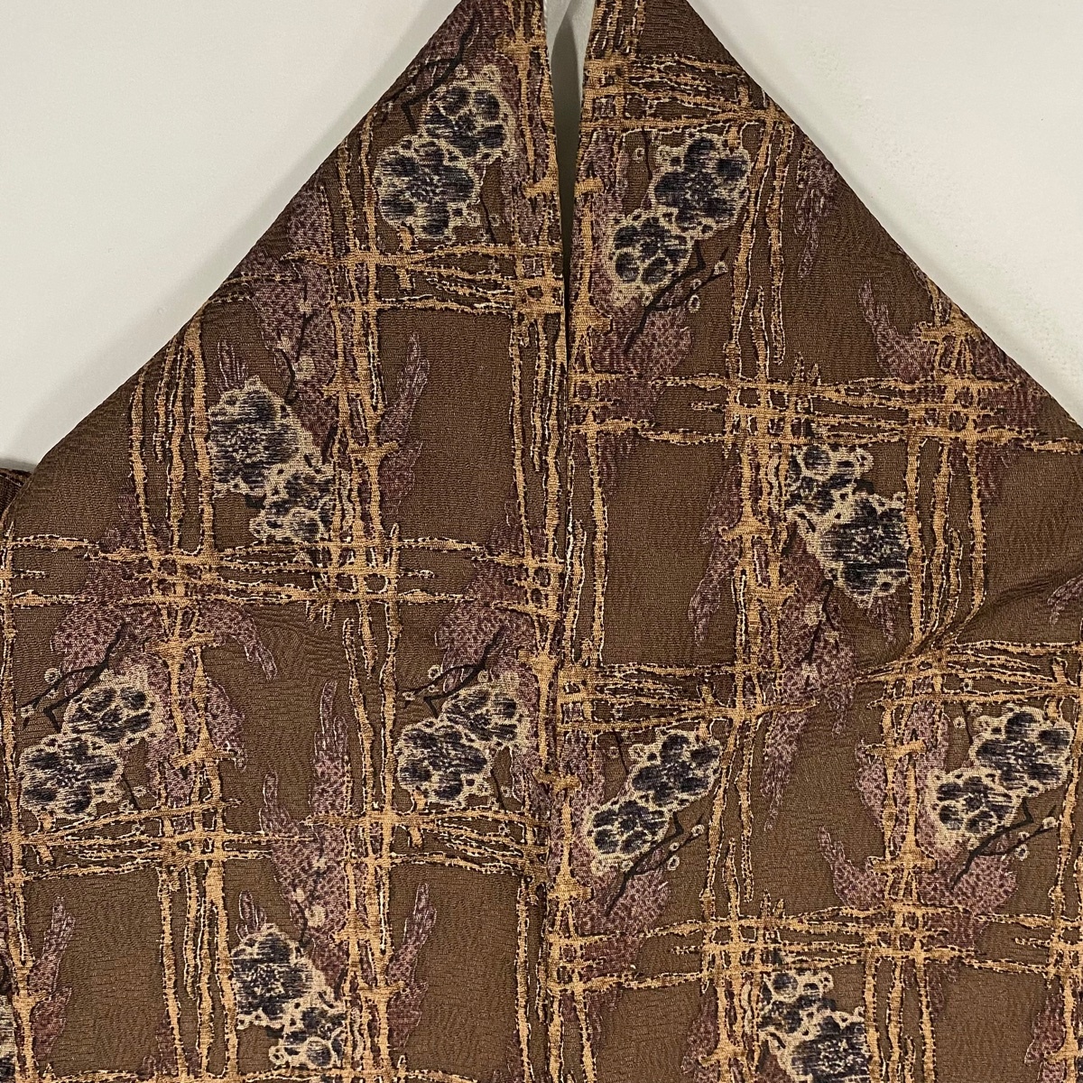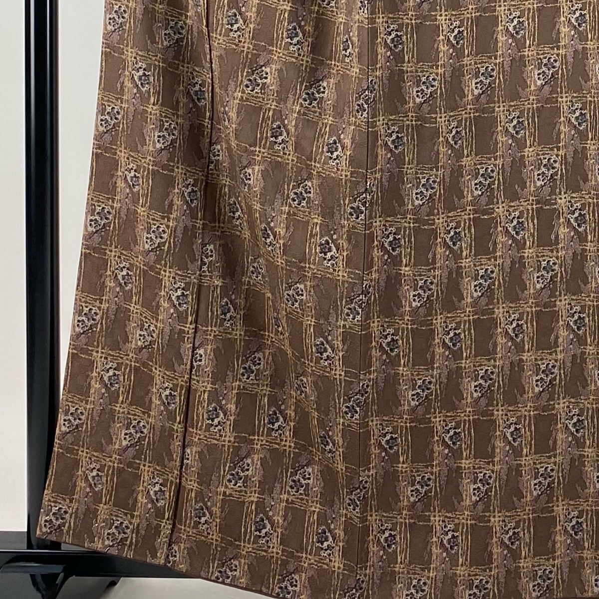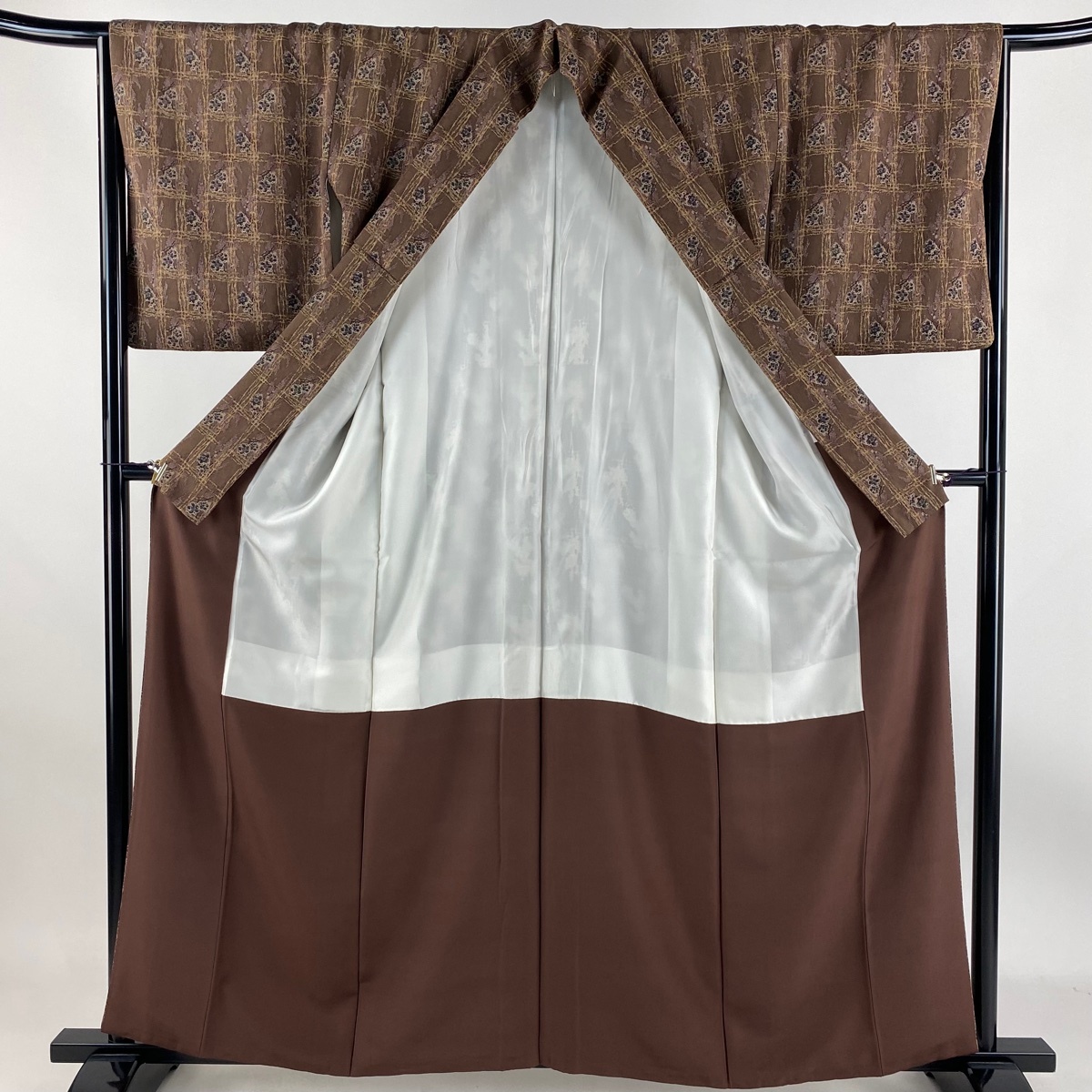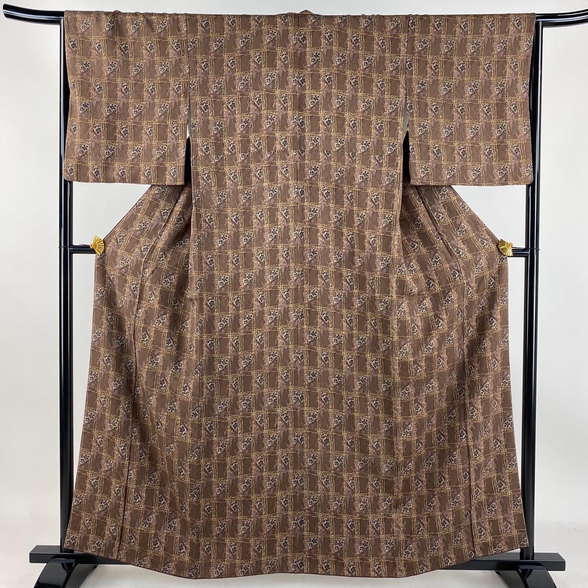 | 小紋 美品 秀品 枝梅 格子柄 茶紫 袷 身丈159.5 裄丈65.5 M 正絹 【中古】 |