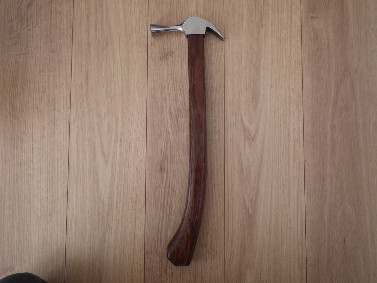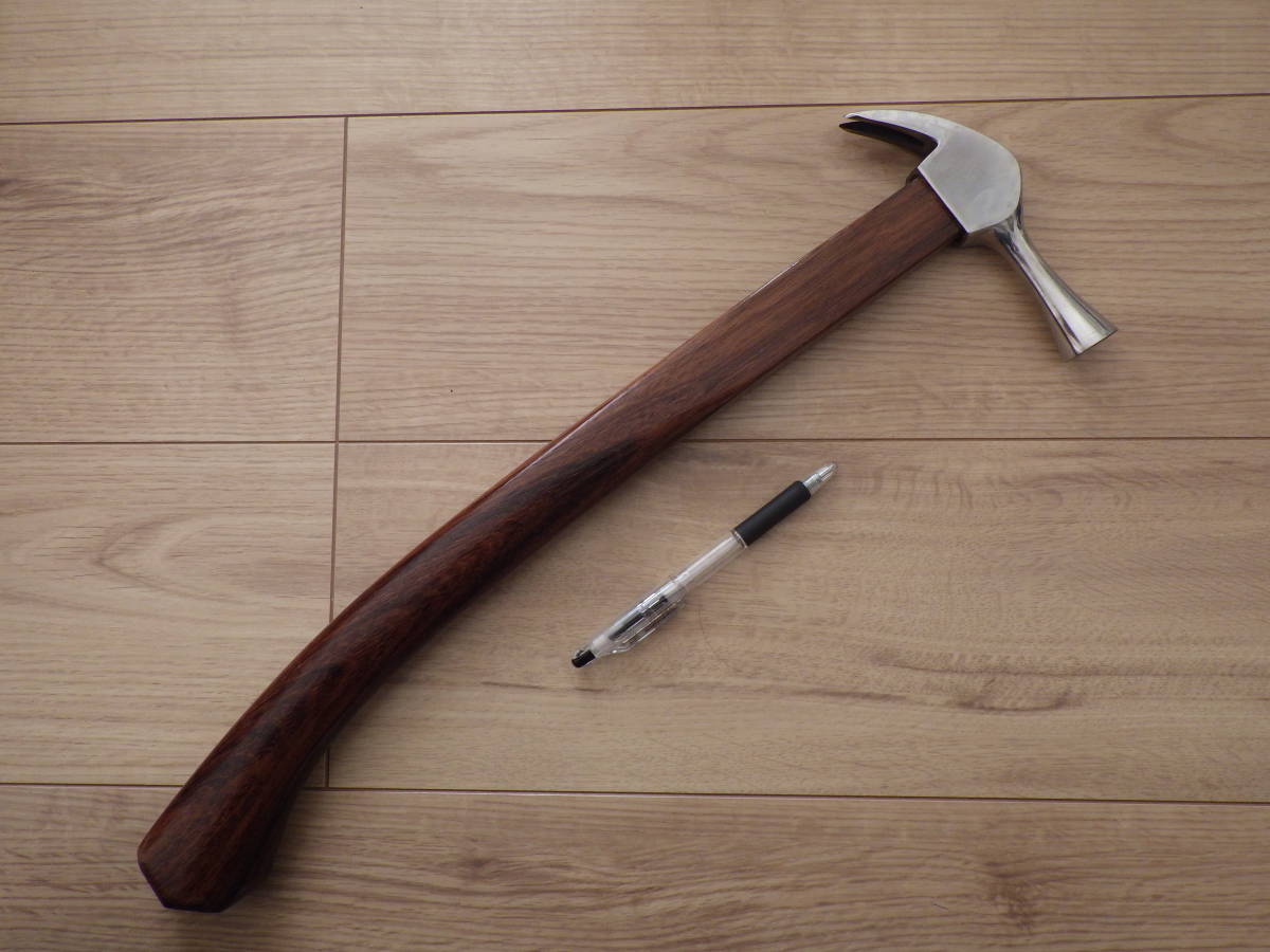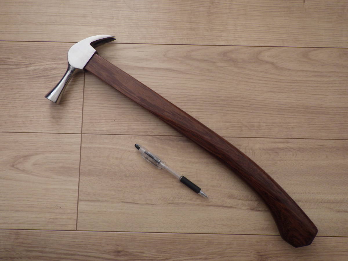 未使用長期保管品 丸速製鍛造ステンレス仮枠ハンマー サイズ少々、猪の牙で磨いたアジアンウォールナット製グリップ柄付き 検索玄能型枠