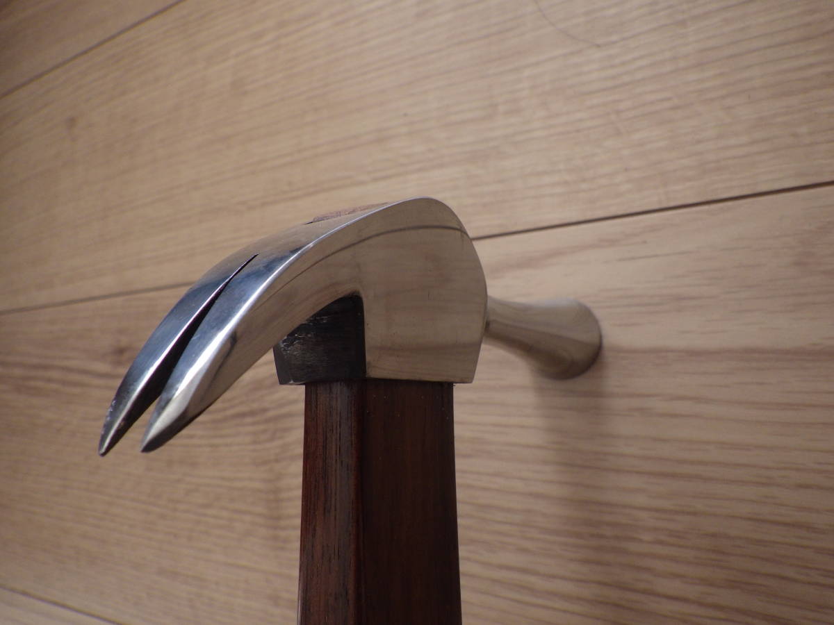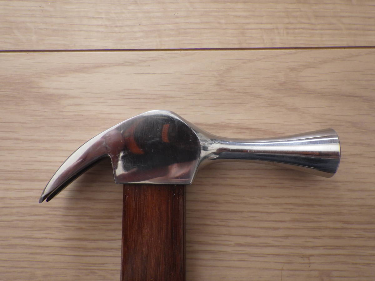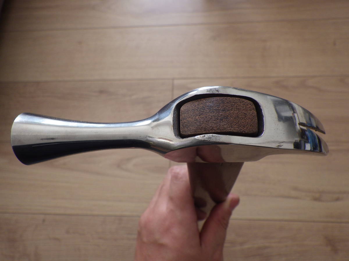 未使用長期保管品 丸速製鍛造ステンレス仮枠ハンマー サイズ少々、猪の牙で磨いたアジアンウォールナット製グリップ柄付き 検索玄能型枠