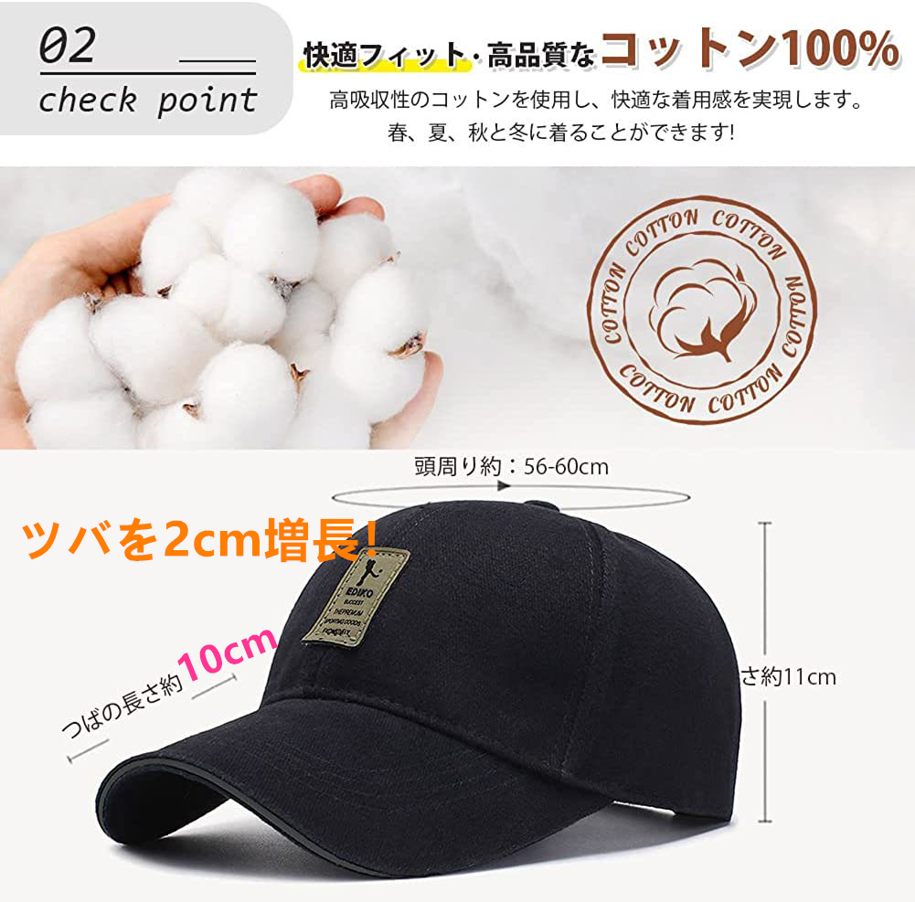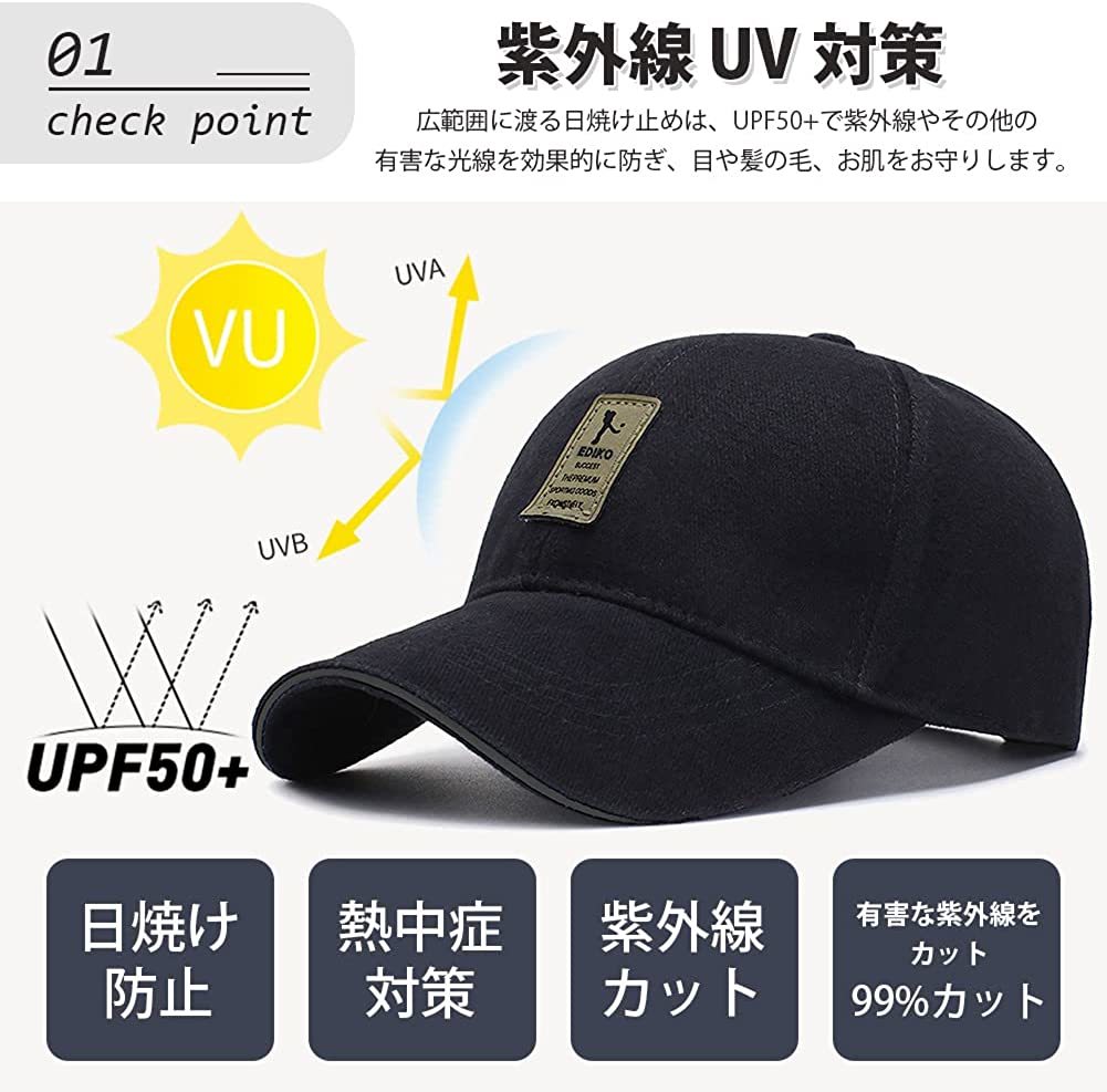 キャップ メンズ 帽子100%コットンUVカット 夏新品 99%紫外線対策 日焼け防止 野球帽 調整可能 男女兼用 ツバ長いキャップ-クリーム