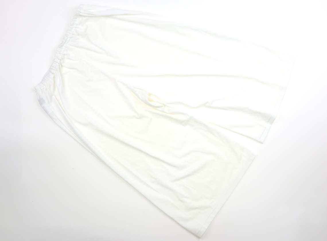 コットンシャツ地。ポリエステルのインナーパンツとセットアイテム。ウエストは総ゴムです。本体前身頃の所々に黄色いシミがあります。お手入れ次第でまだお使い頂けそうです。