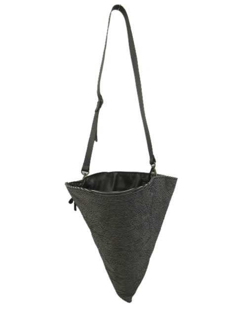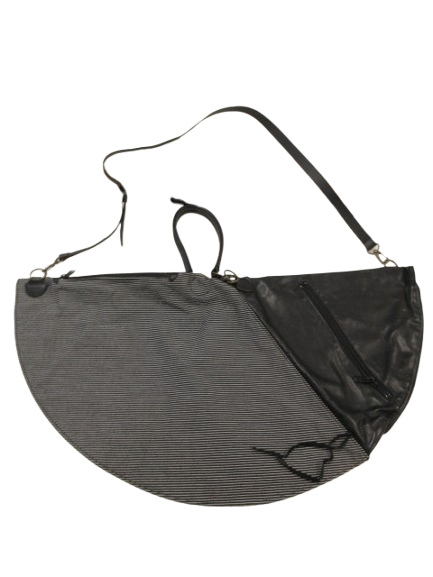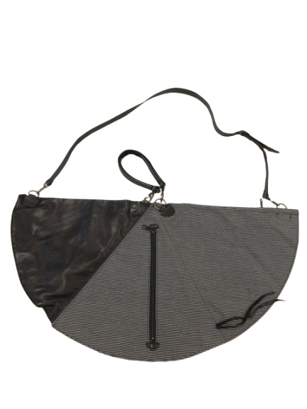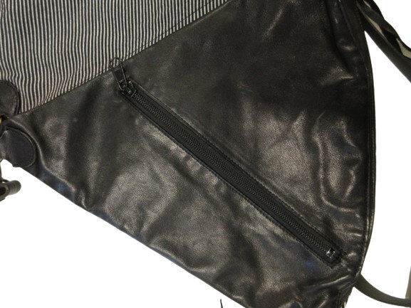 ジウ 慈雨 変形バッグ ブラック 黒 ストライプ 75 牛革 綿 コットン センソユニコ かばん 鞄 レディース