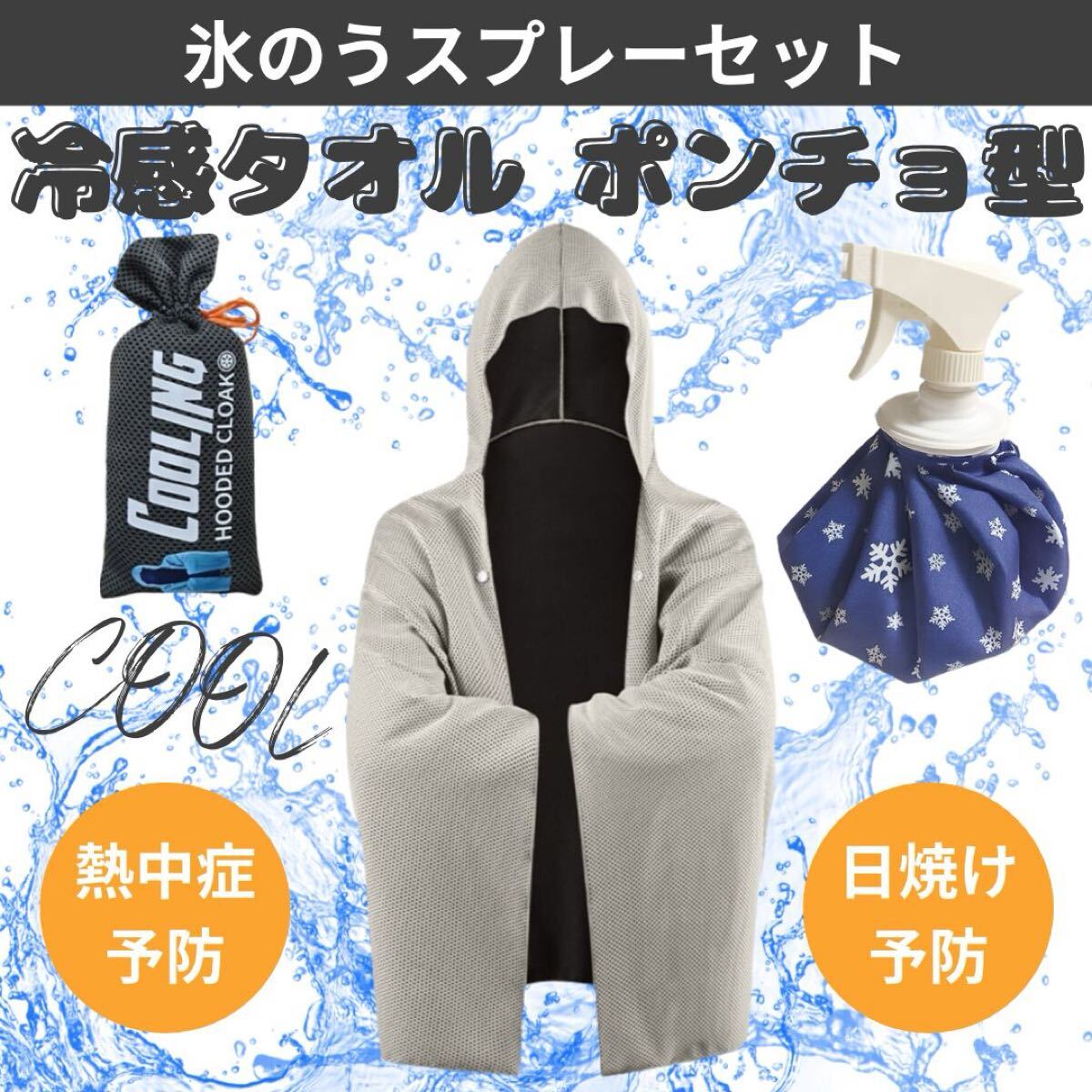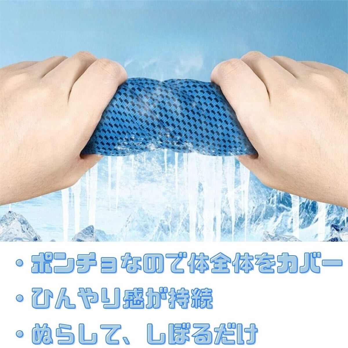 ポンチョタイプなので、上半身全体を覆う事ができ熱中症対策にも最適!スナップボタン付で飛ばされにくい仕様。また、通常のタオルとしても使用可能です。