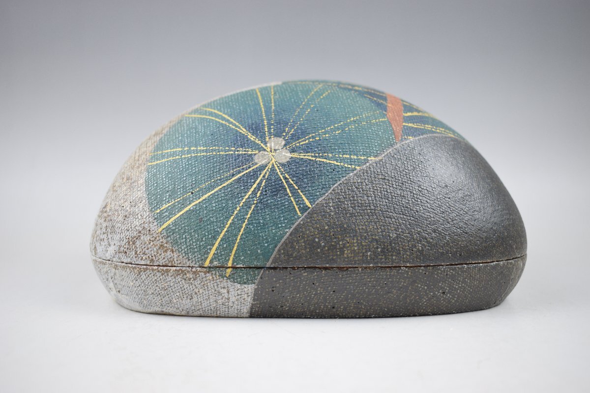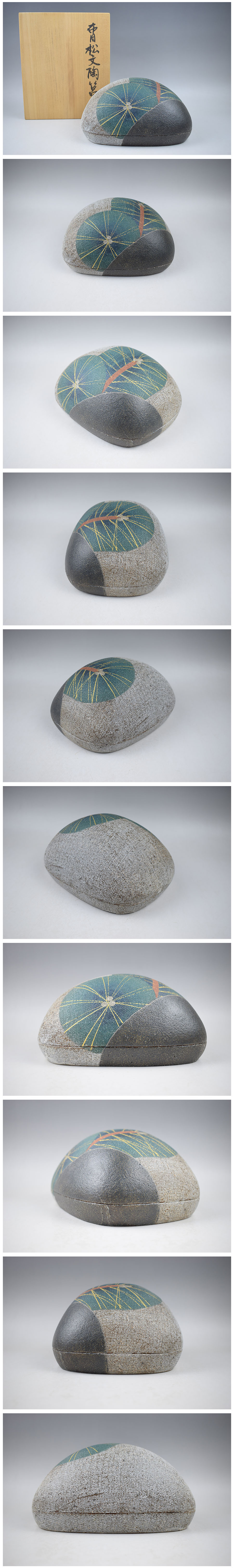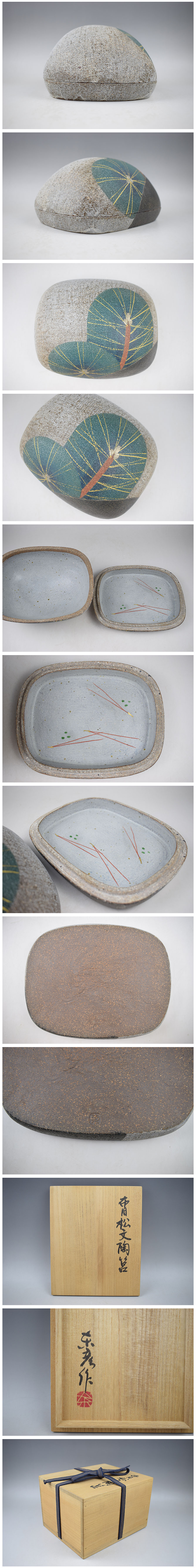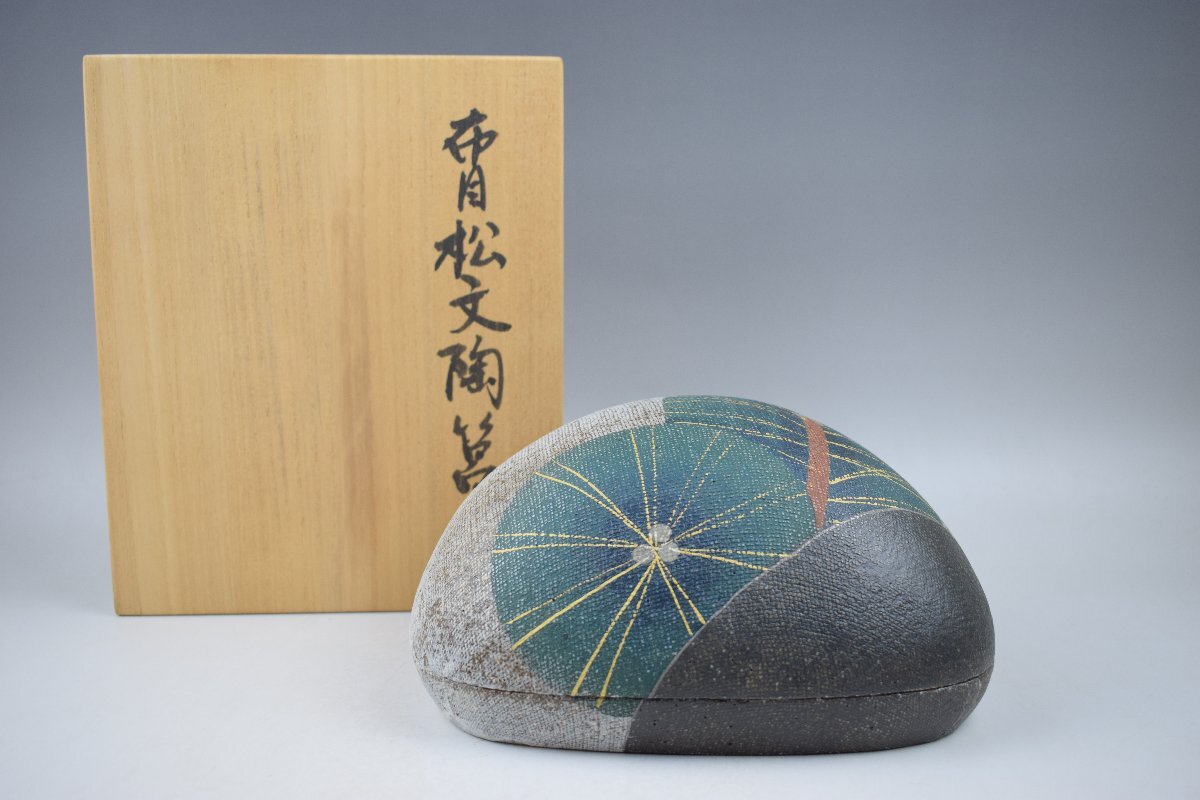 【伊藤東彦 布目松文陶筥 蓋物 共箱 真作保証 】