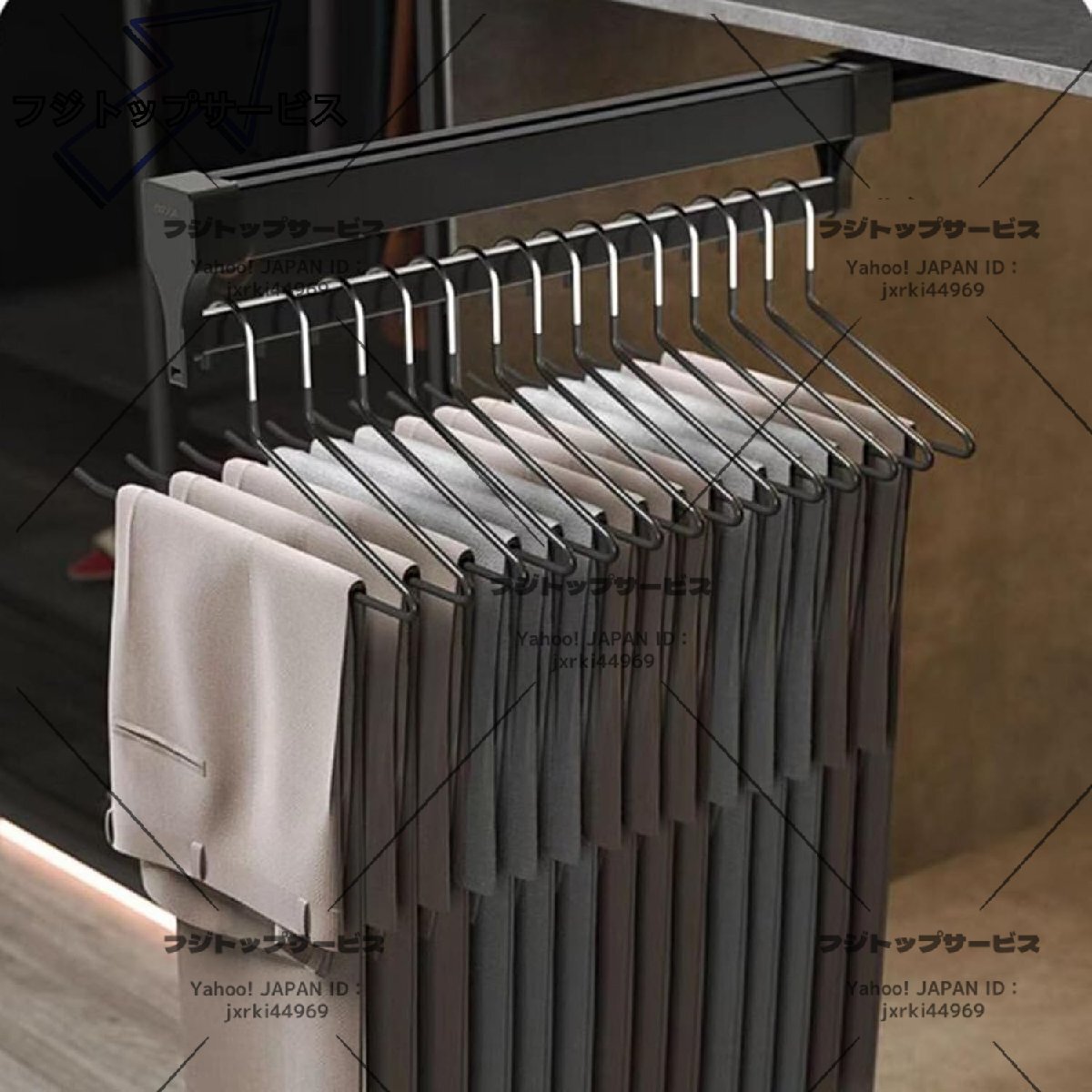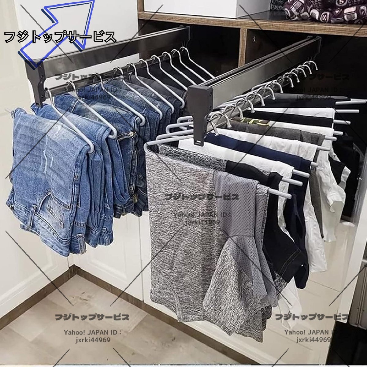 【2列スライドレール】:この引き出し式ワードローブロッドには、完全に引き出せる2列スライドレールが装備されており、使用中にブロックされることなくスムーズに押したり引いたりできます。自由に調整でき、使いやすいです。