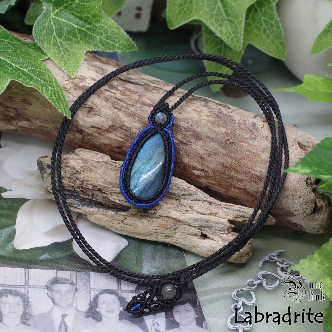 そんな、幻想的な輝きを放つ『ラブラドライト』を使用し、より石達の力が発揮できるように願いを込め丁寧に編んで作成した、当ショップオリジナルのハンドメイドマクラメ編ネックレスです。(*^-^*)