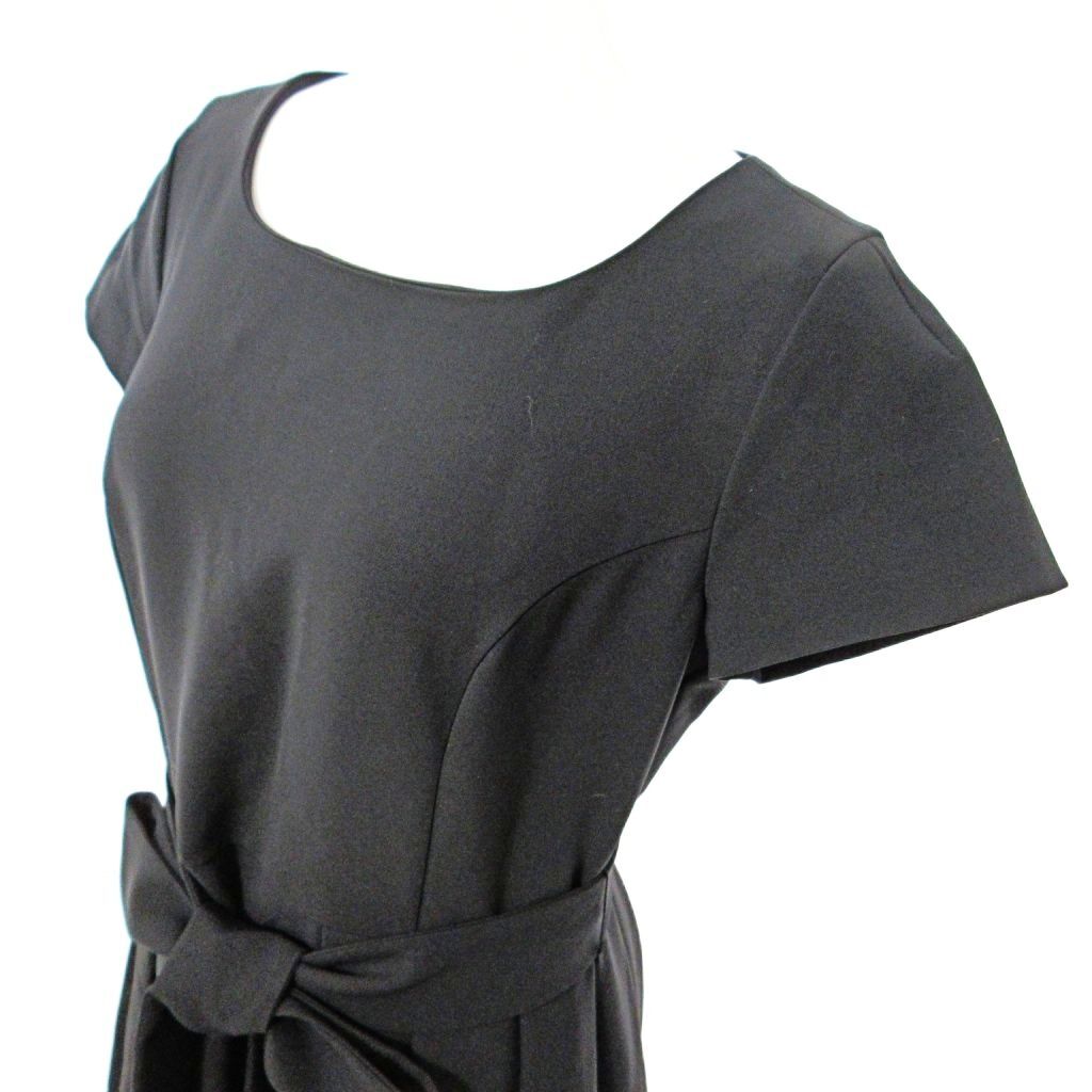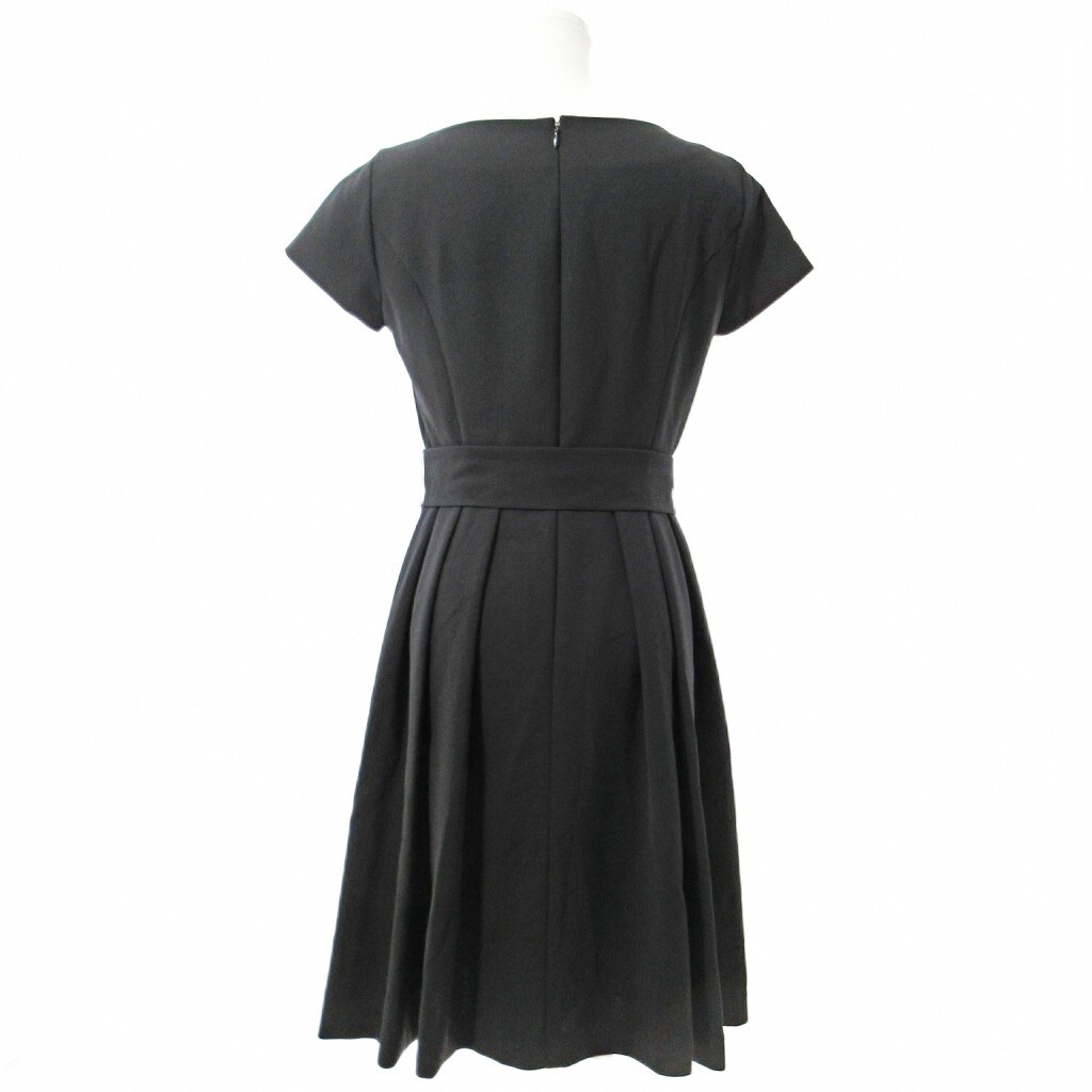 エムプルミエ M-Premier 美品 ワンピース 膝丈 半袖 タック フレア リボンベルト 冠婚葬祭 フォーマル 38 ブラック 黒 0903 ■YHS1 レディース