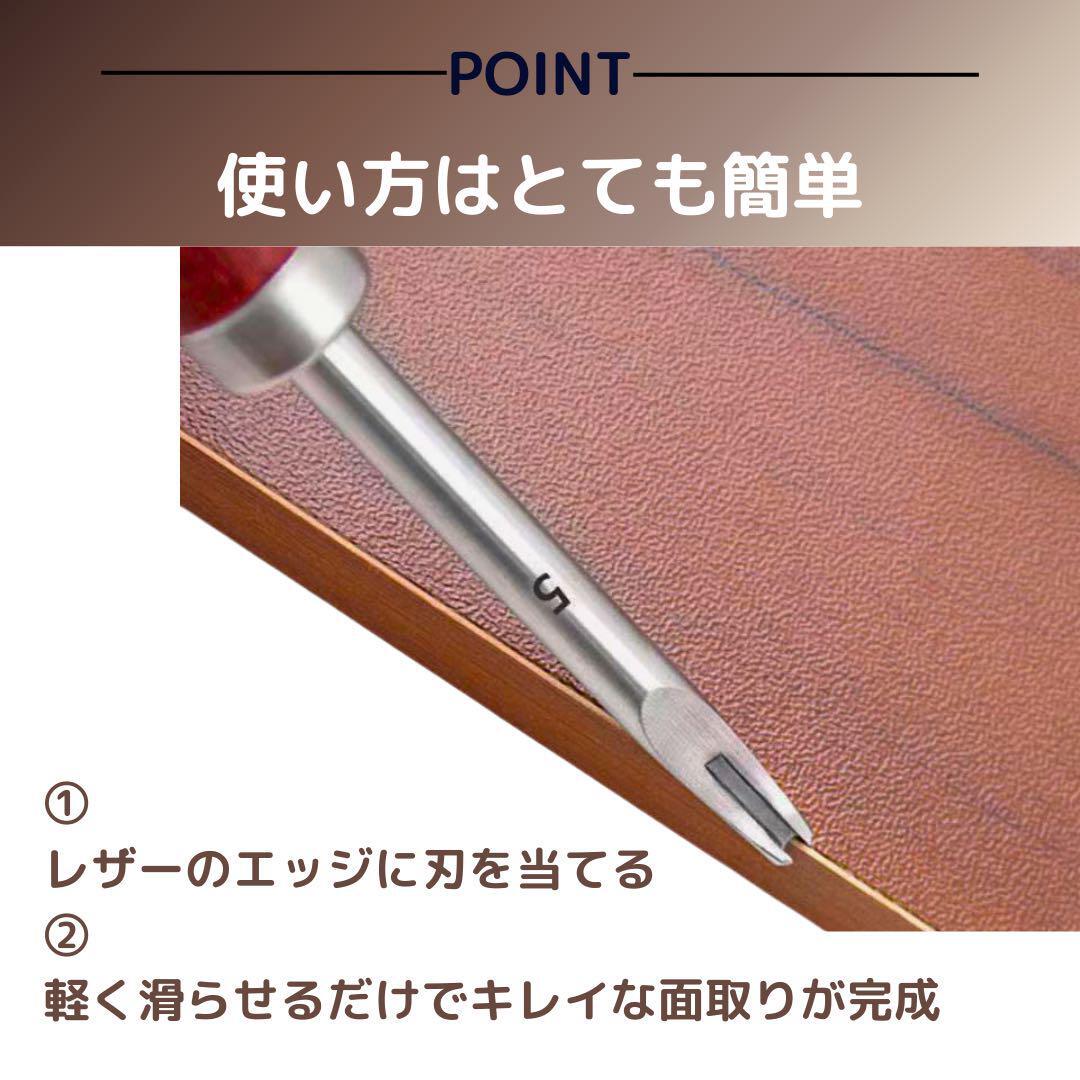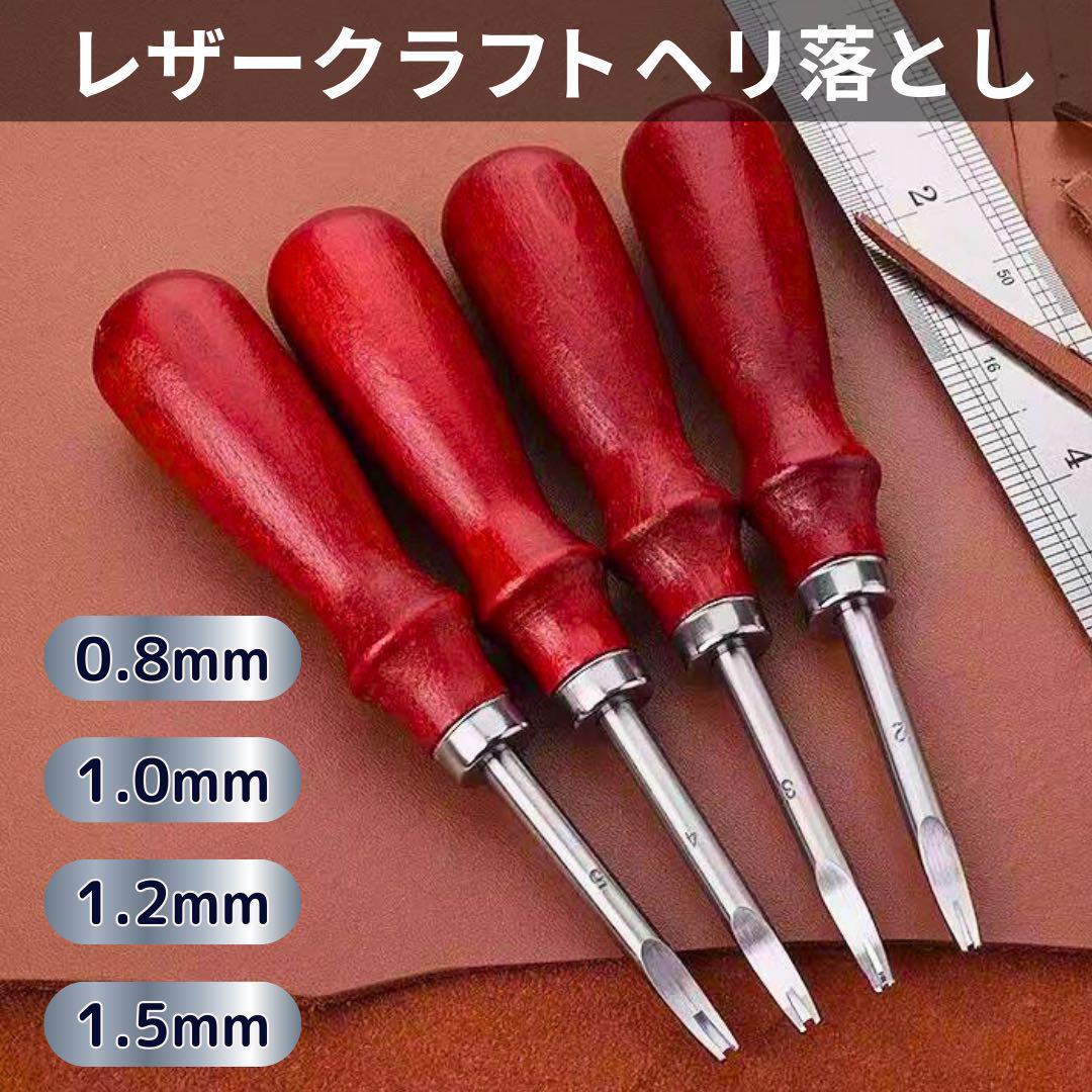 【職人の仕上がりをあなたの手に】 レザークラフト ヘリ落とし 4本セット (0.8mm / 1.0mm / 1.2mm / 1.5mm) 「作品のクオリティを一段階アップさせたい…」 そんなレザークラフト愛好者のために、切れ味抜群のヘリ落とし4本セットをご用意しました。 ◆ 美しい仕上がりを実現する4サイズセット 0.8mm / 1.0mm / 1.2mm / 1.5mmの4種類を揃えているので、薄手の革から厚手の革まで自在に対応。 作品ごとに適したサイズを選べるため、細部までこだわった仕上がりが可能になります。 ◆ シャープな切れ味でスムーズな作業 刃の鋭さが違うから、無駄な力をかけずにスッと滑らかにカット。 切れ味が悪いヘリ落としを使うと革を傷めることもありますが、本製品ならストレスなくスムーズな作業ができます。 ◆ 手に馴染む設計で疲れにくい 長時間の作業でも疲れにくい握りやすいハンドル設計。 滑りにくいグリップなので、細かい作業も安定して行えます。 ◆ 初心者からプロまで満足の仕上がり 「ヘリの処理が上手くできない…」という初心者の方も、これを使えば簡単に均一で美しいカーブを作れます。 プロの職人も納得の品質で、仕上がりに差がつくアイテムです |