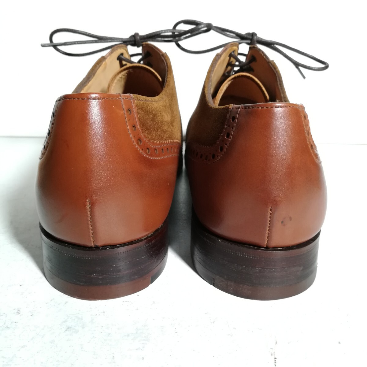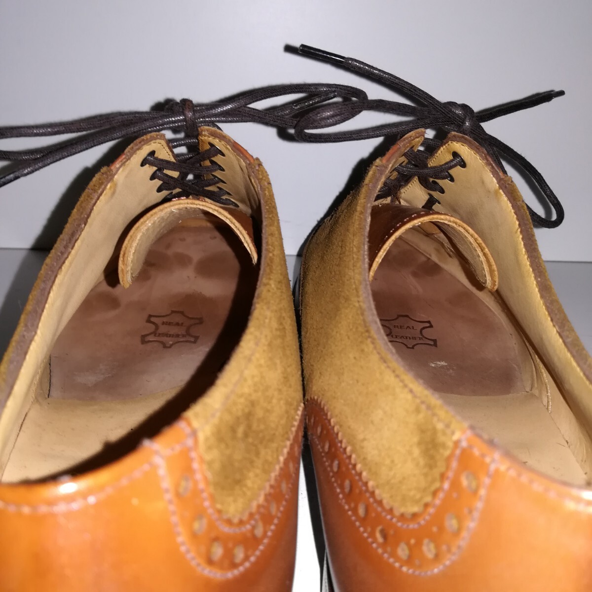 商品説明 | 埼玉県からの発送になります。 おてがる配送 宅急便にて発送致します。 発送は落札してから1~3日見ていただければと思います。諸事情により発送が遅れる可能性がございます。 中古品のブルックスブラザーズ ウイングチップシューズです。 商品詳細 お色 ブラウン サイズ 8 / D 革靴サイズ26.0~26.5cm程度 アウトソール全長約28.7cm 全幅 約10cm (素人採寸ですので多少の誤差はご容赦ください) ●状態①「外観」 履きジワ、擦れ、傷、斑点状の汚れ、変色、ヒールの化粧釘に青サビ、ソールに汚れがございますが、比較的良好な状態です。 ●状態②「ソール・インナー」 ・インナーにカビ汚れはあるものの、ロゴは綺麗に残っています。 ・踵の削れは1mm以下です。(トゥの部分は削れが多少ございます) ●その他・付属等 シューズキーパーや箱、袋といった付属品はございません。 神経質な方はご購入はお控えくださいますようお願い致します。 こちらに重大な過失があった場合のみ返品可(それ以外のサイズ違い等といった理由は不可。) また、お届けしてから1週間以上経過した物についても不可とさせていただきます。上記返品期限経過後の取引ナビ等々からの返品についてのご連絡に関しては対応致し兼ねますのでご了承ください。 出品商品に関しましては他で譲り先が見つかった、在庫処分等の理由で予告無く出品を取り下げる場合もございますので、予めご了承ください。 ※領収書の発行は受け付けておりません。 見落としている傷や汚れ、また中古品などには検品時に気づけないような経年の使用や保管による内部劣化や消耗などがある可能性が御座います。また、シューキーパーを入れて撮影しておりますので実際と印象が異なる場合がございます。 重ねてになりますが、ご理解のある方だけ、ご入札下さいませ。 商品はプチプチに包装して発送致します。スエード素材の商品はプチプチの跡が付く可能性がございますので、ブラシや手で均していただくようお願い致します。 商品写真は撮影時の明るさや光の当たり具合、お使いのディスプレイ(彩度、明るさの設定)等によって、実物の色味と差が生じる場合がございます。 また、当方は素人ですので予めご了承ください。 他にも様々出品しておりますので、どうぞご覧ください ↑↑↑↑↑↑↑↑↑↑↑↑↑↑↑↑ ■決済金額・決済方法■ 【決済金額】 落札価格+送料が決済金額となります。 【決済方法】Yahoo!かんたん決済(クレジットカード、コンビニ、銀行振込、PayPay等々)にてお支払いください。 Yahoo!かんたん決済お支払い期限内にお支払いお願い致します。 ご落札頂いた際にこちらから連絡をすることは基本的にはございません。重要な連絡事項がある場合はご連絡しますのでよろしくお願い致します。 ●お問い合わせ等、気づかないことがあり即答できない場合がありますので、あらかじめご了承ください。 また、対面や電話でのお取引やご対応は承っておりません。 以上の内容をご理解して頂いた方のみ入札下さい。 埼玉県公安委員会古物商許可衣類商 (写真機類・事務機器類・道具類・機械工具類・皮革ゴム類) 第431070035500号 |